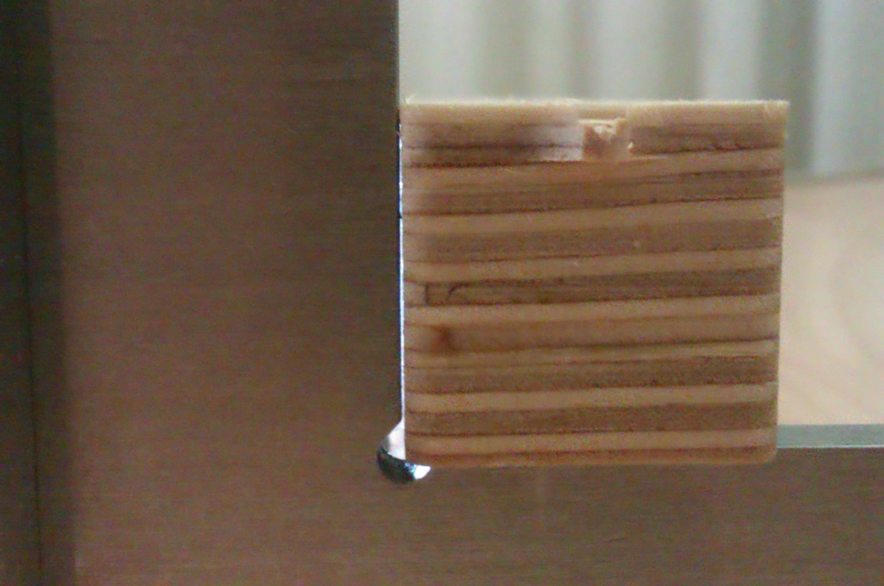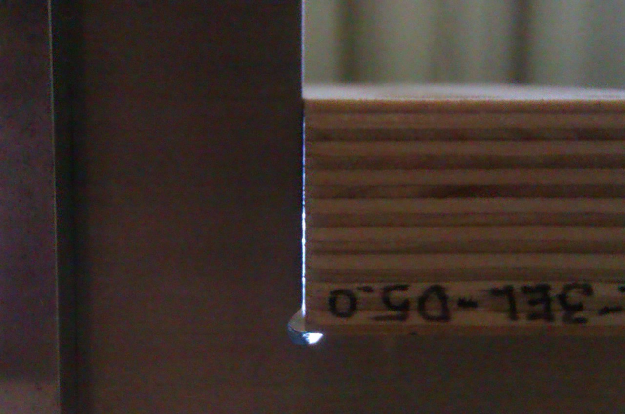Также обнаружил, что дубовые детали почти не имеют (на вскидку - 96%) такого косяка (даже если при резке имели открытые стороны). Деталей из ясеня с таким косяком уже больше дубовых, но меньше фанерных (береза).