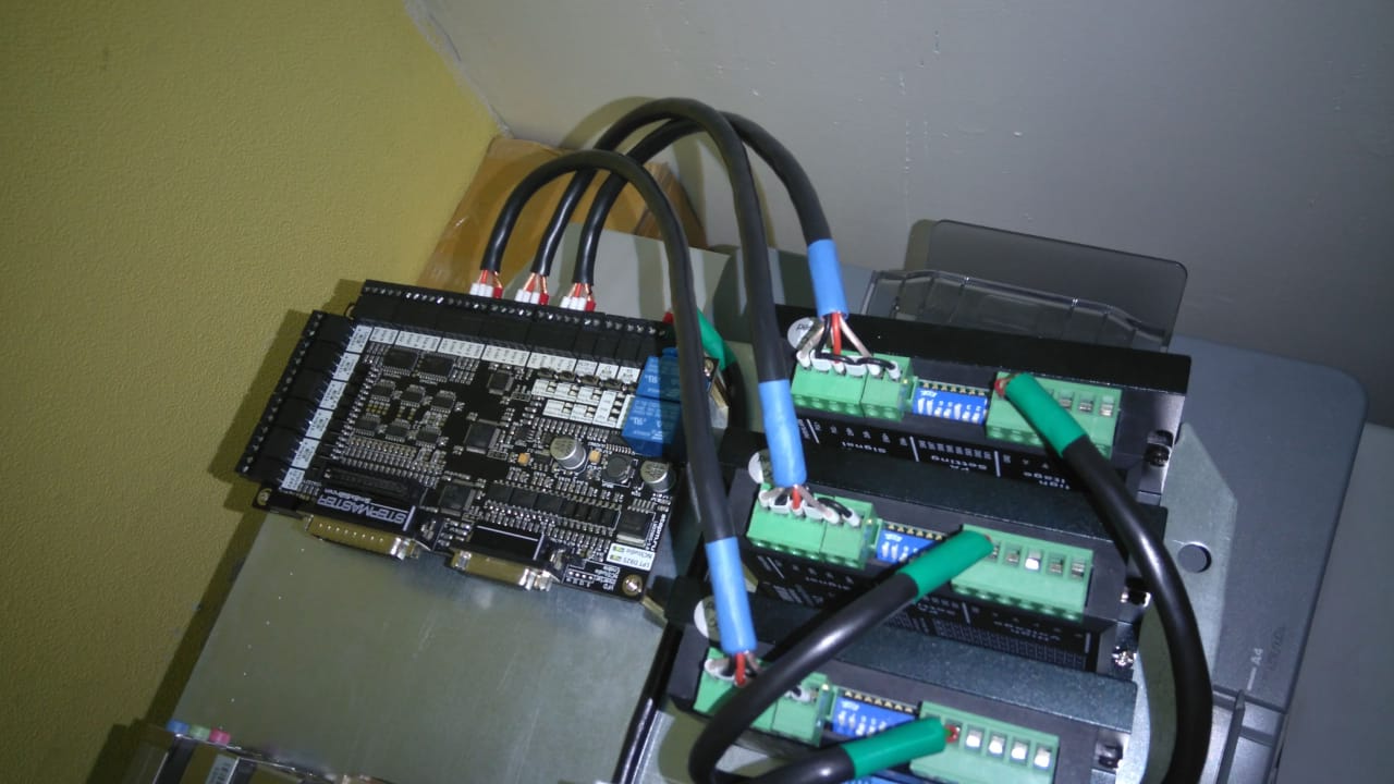 С экранами разобрался. Потихонечку монтажу всё. Пока не по феншую провода от ШД в шкаф. 5го пина не хватает для "экрана".