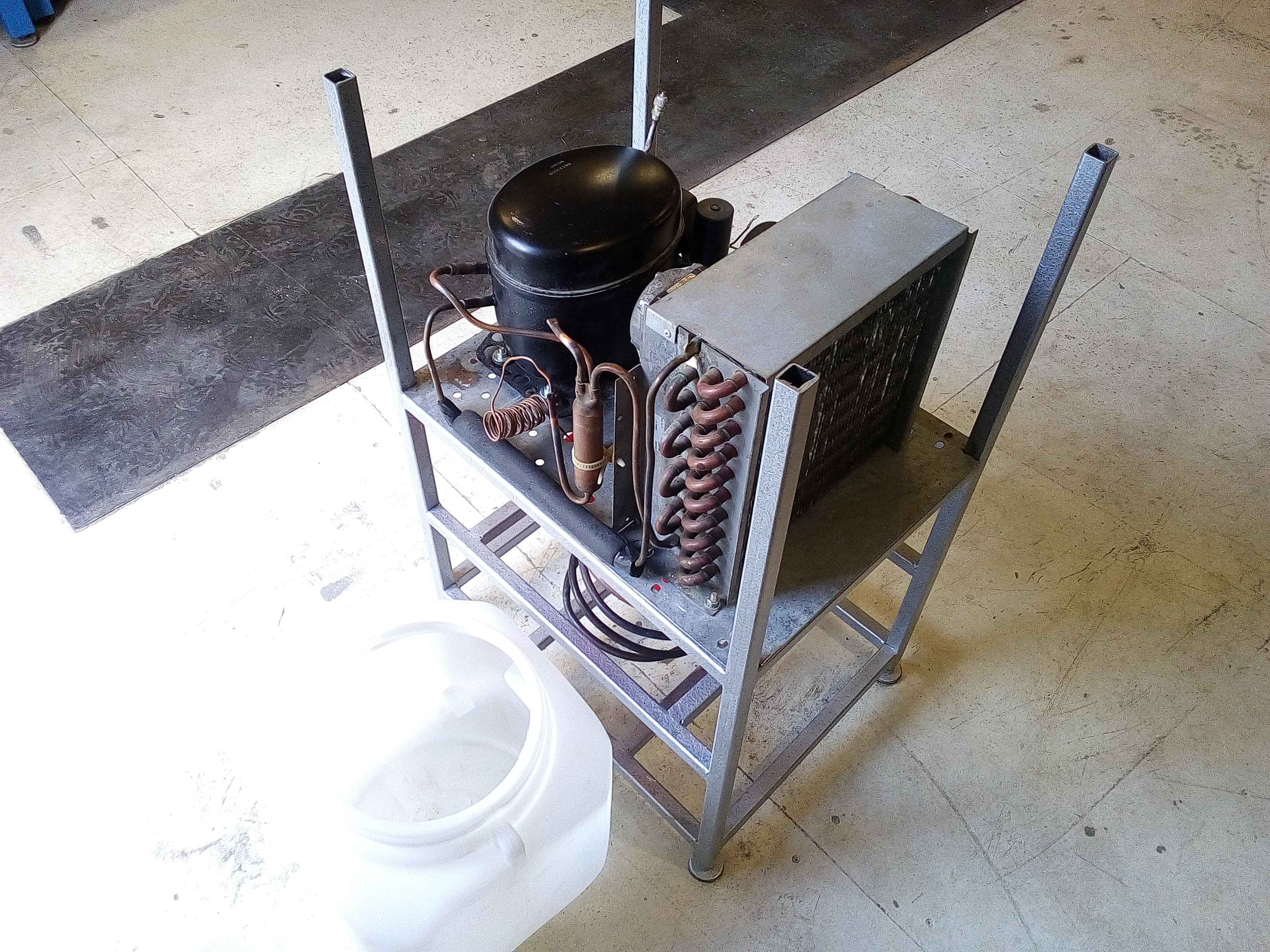 Пока суть да дело, начал собирать чиллер для трубки. За основу взял испаритель от чего-то промышленного, холодильный компрессор.