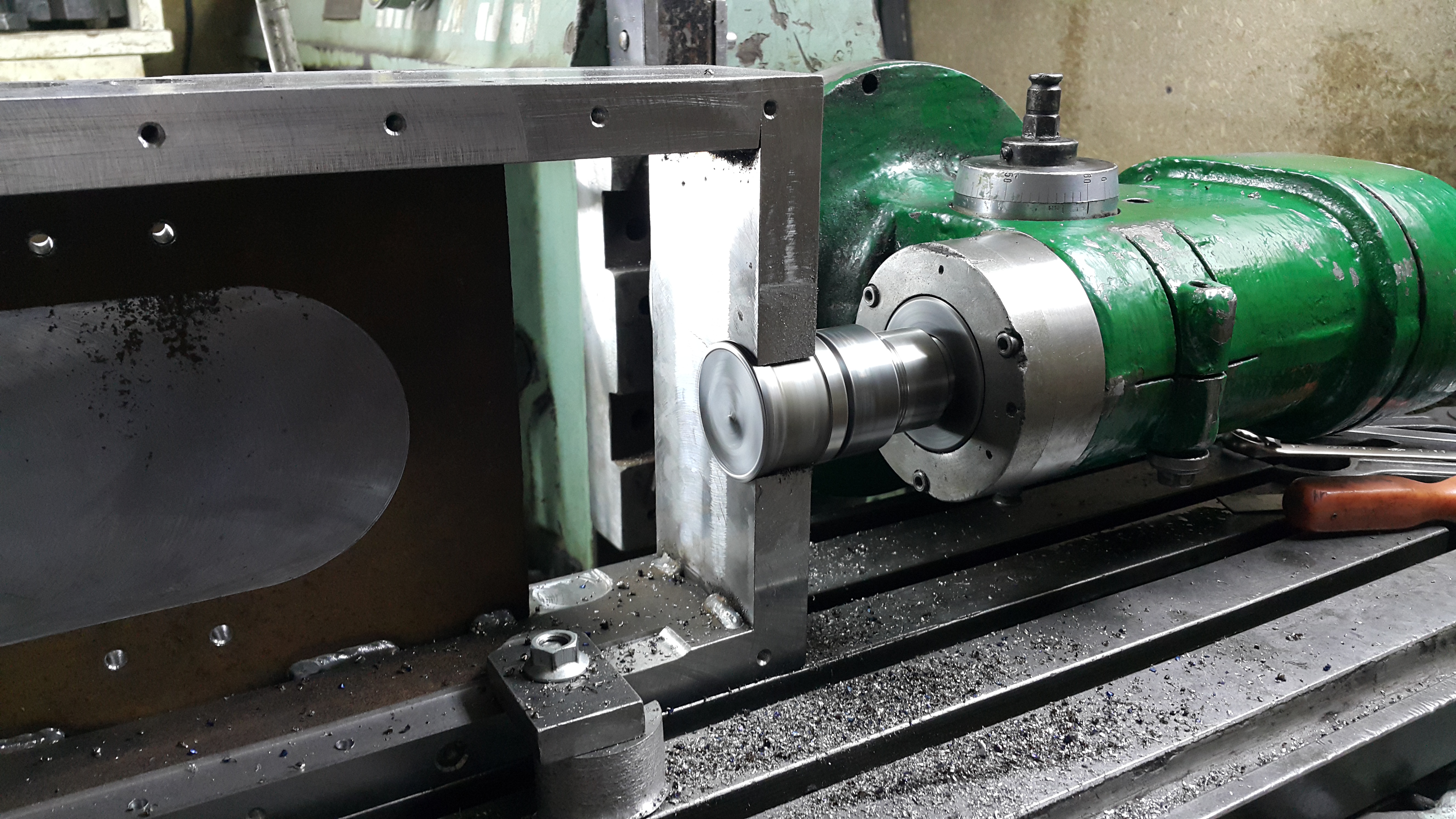 Повернул голову на 90 градусов. Обкатать выставил. Просверлил. Торцанул плоскость прилегания под опору винта.