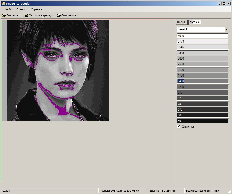 G-код здесь использует все оттенки серого, поэтому такой вид светлый, самый первый конвертатор Артура его сгенерировал.