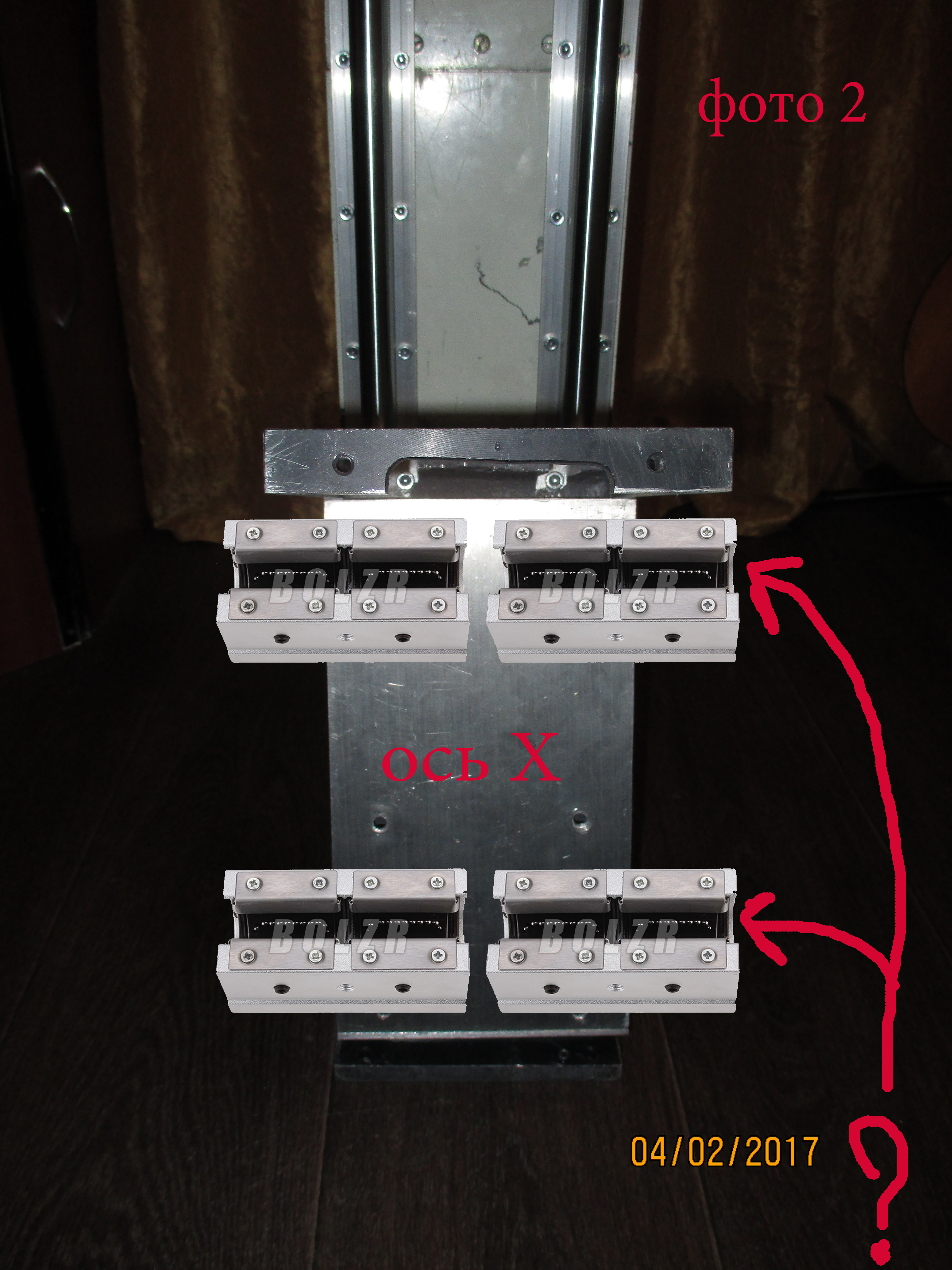 2) На второй фотографии видно каретки тоже со стрелками и знаком вопроса. Какой оптимальный размер этих кареток можно поставить если без шпинделя сама ось весит уже 20кграмм?