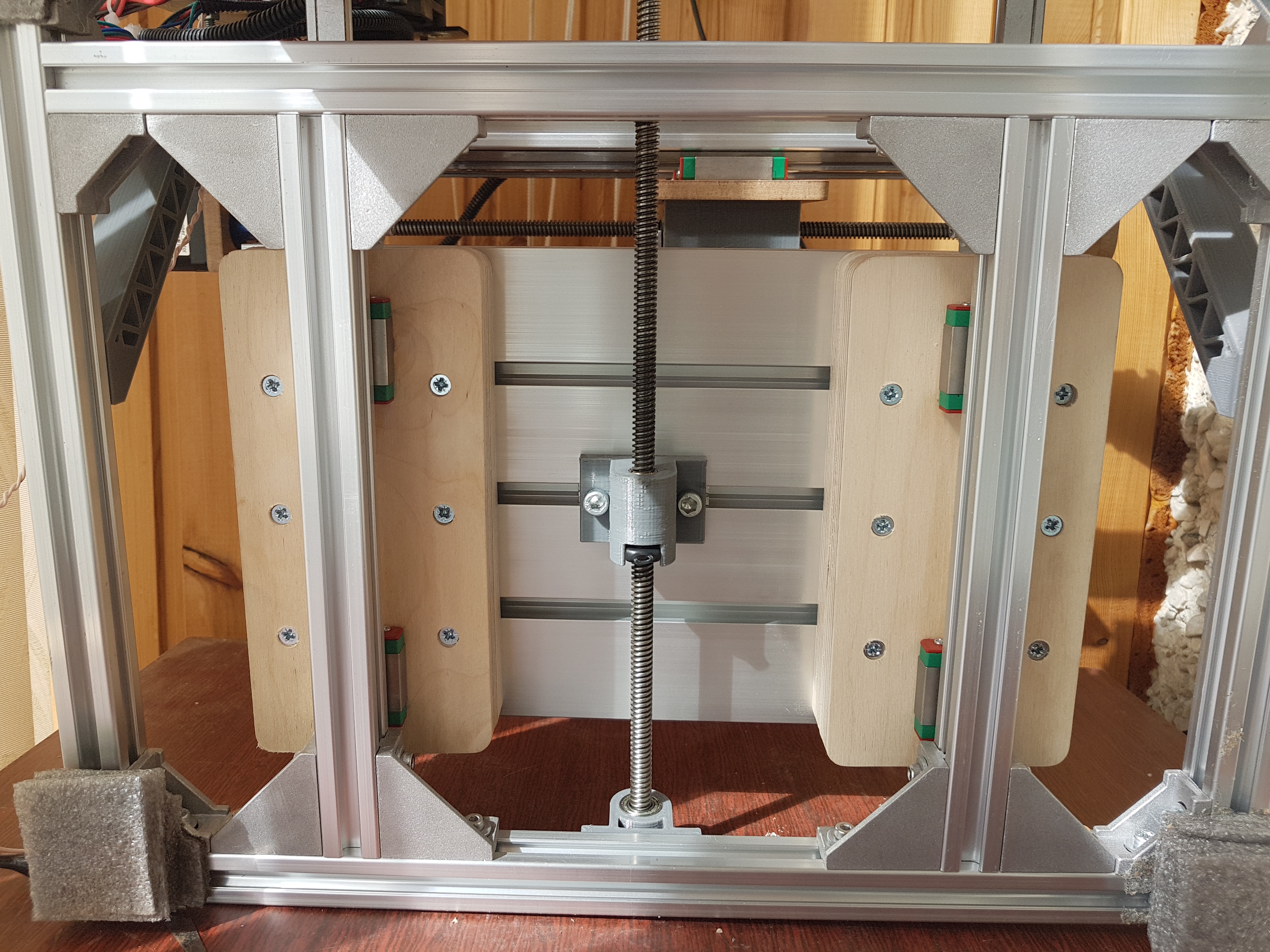 Винт трапеция по Х кривой.. это явно видно... у меня так-же.. по Х и по Y, поэтому будет подклинивать в крайних положениях или требовать больше усилий от движка.. Надо поставить второй подшипник ближе к движку и гибкую муфту.. так движок дольше проживёт и усилие на перемещение по всей длине будет одинаковое.. По Х поставил два дефолтных подшипника, на ZY ранее покупал KP08 4шт.. два на зетку уже поставил..