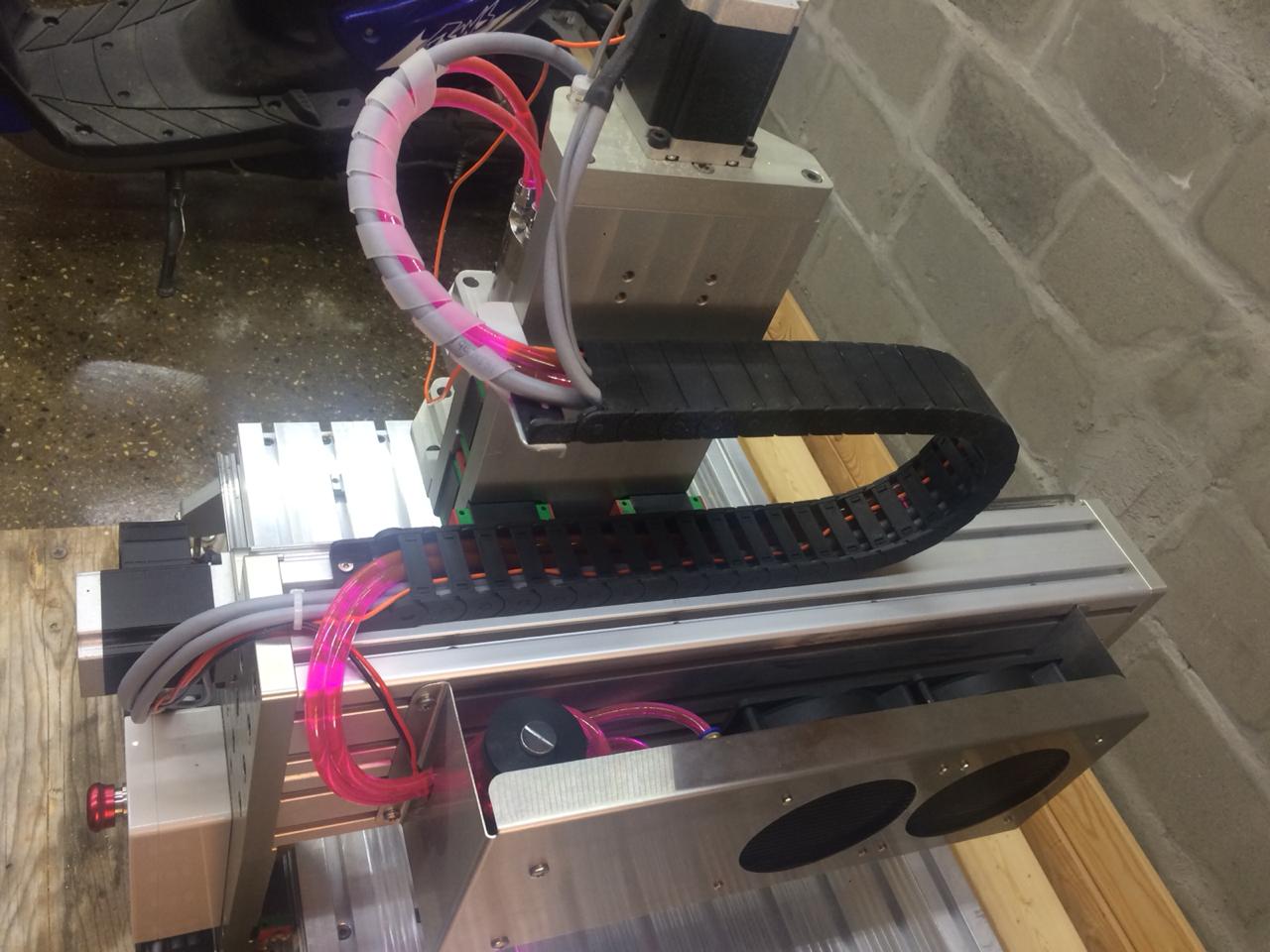 С охлаждением долго ломал голову как сделать просто и безгеморойно для клиента чтобы ему не прокачивать систему самому. Были сомнения на тему попадания стружки в вентилаторы но пробный запил сисек показал что почти ничего не летит.
