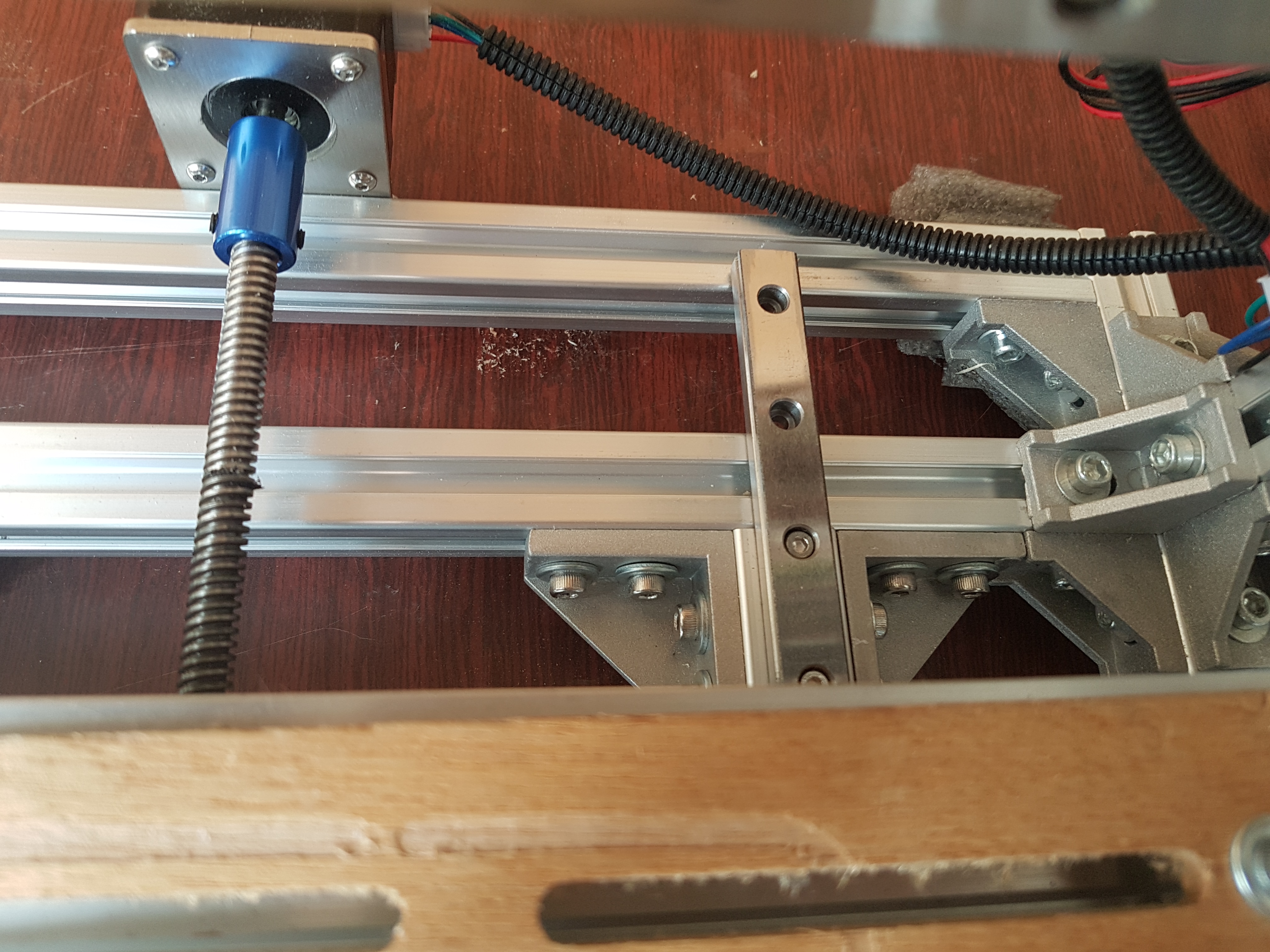 Винт трапеция по Х кривой.. это явно видно... у меня так-же.. по Х и по Y, поэтому будет подклинивать в крайних положениях или требовать больше усилий от движка.. Надо поставить второй подшипник ближе к движку и гибкую муфту.. так движок дольше проживёт и усилие на перемещение по всей длине будет одинаковое.. По Х поставил два дефолтных подшипника, на ZY ранее покупал KP08 4шт.. два на зетку уже поставил..
