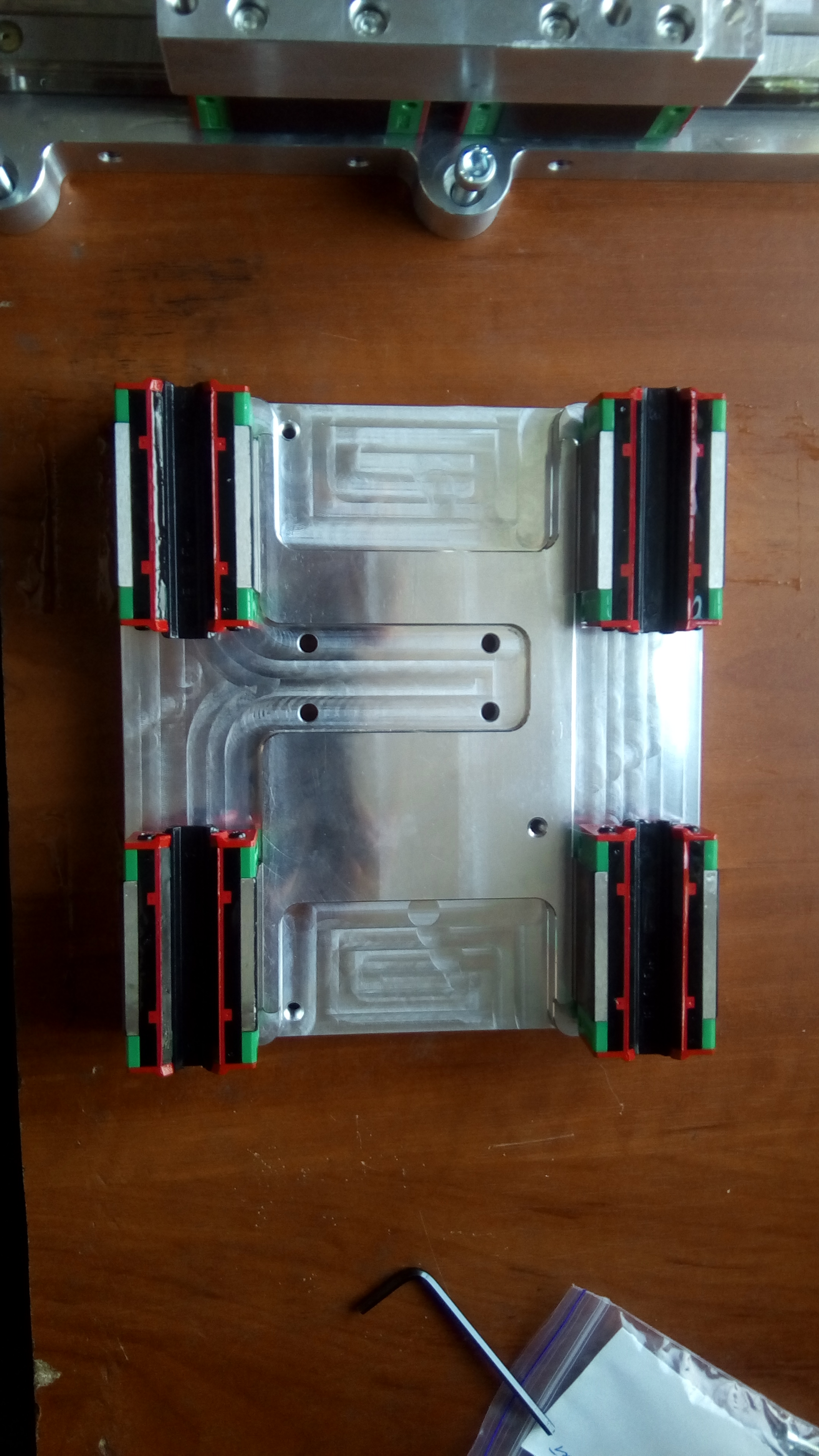 На фото ось Z без ШВП и опор сбоку вид сбоку и сверху Немного фото сборки оси Y Плита Y в сборе Устанавливаем рельсы в проставки и одеваем на каретки Присоединяем ось Z