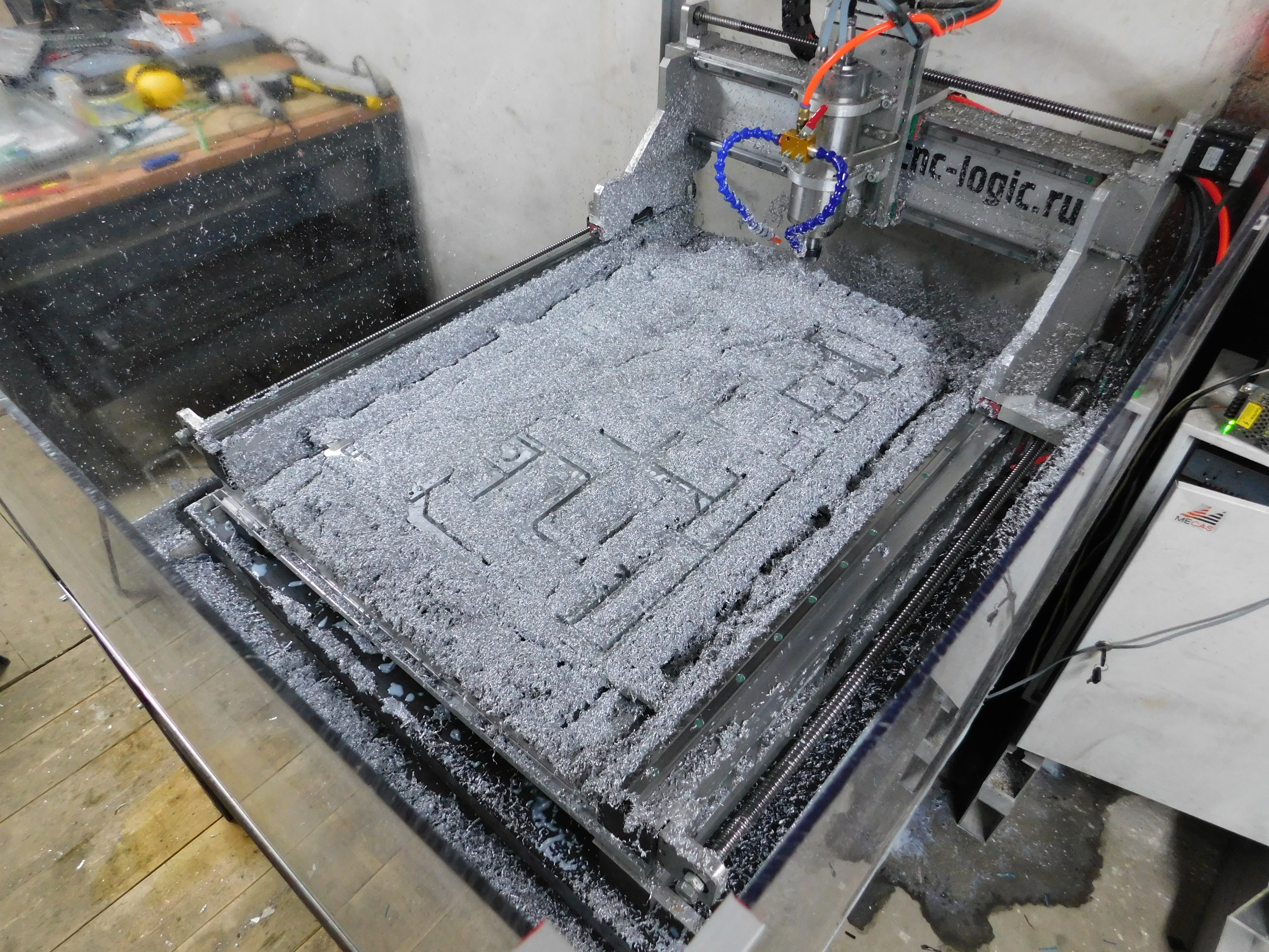 Самое главное - что кабинет всё таки несёт ту пользу которую нести должен: закрытие площади мастерской от СОЖи и стружки. Полноценная видимость со всех 5ти сторон. Под самим кабинетом достаточно места для того чтобы спрятать охлаждайку для шпинделя и блок управления. Все стёкла легкосъёмные: это даёт возможность оперативно подобраться к заготовке чтобы её снять или прицепить, к частям станка для их обслуживания и смести стружку.