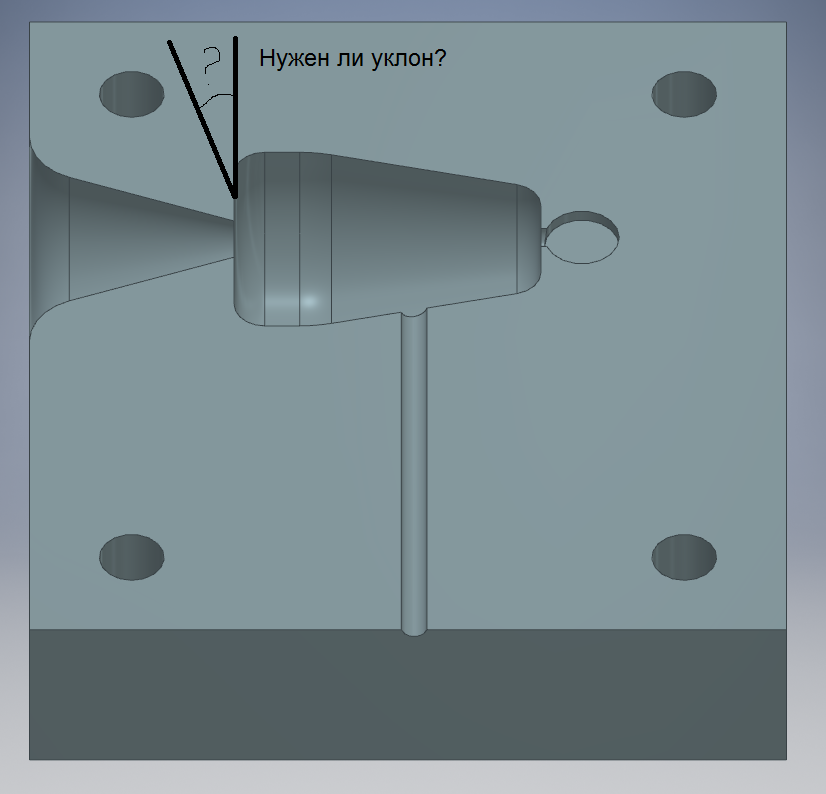Здравствуйте, Алексей. Спасибо что откликнулись. Имею вот такое чудо проектирования. Впервые делаю такое. До этого (вчера) держал в руках парочку подобных форм. То что запомнил, то и отобразил на своей модели. Другие какие то хитрости или "плюшки" я не увидел или не понял. Смотрите. Имею на руках крючок и грузило. Дали как образец. Нужно в форму вставить крючок , сомкнуть форму, залить свинец, разъединить форму и получить изделие. Тут всё понятно. Не ясно как проектируют такие формы, закладывают ли уклон для фрезы (или зависит от того, чем я буду фрезеровать), какой дать "плюс" на диаметр крючка? чтобы не вбивать его в форму и в тоже время чтобы свинец не затекал туда, куда не надо.