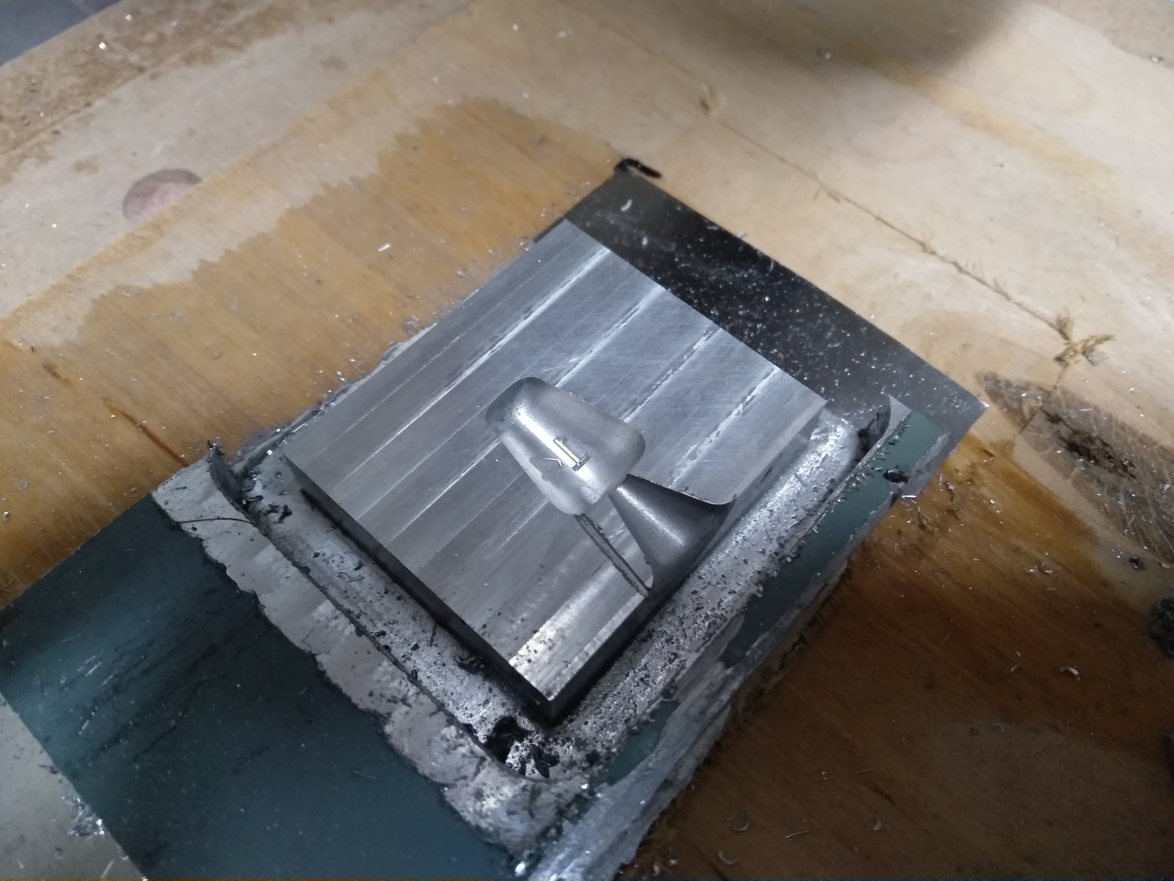 На удивление, шпакля даже чистовую на всю глубину выдержала. 0,2 мм припуск был на чистовую