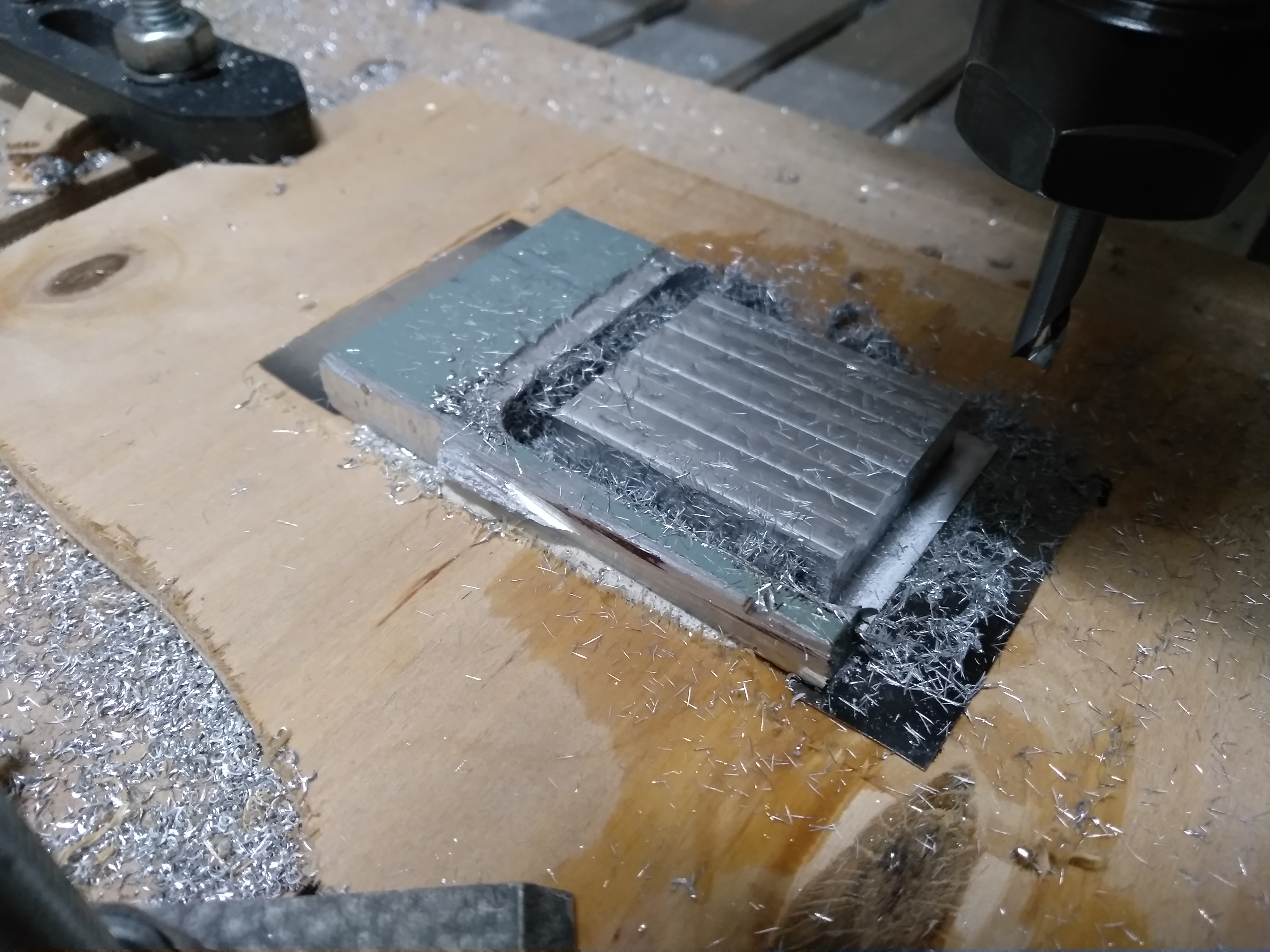 Не без косяков фрезеровка. Почему то фреза решила через материал пройти от наружной фрезеровки к центральной. Ну да ладно, выжила фреза, благо подачу под конец я уменьшил