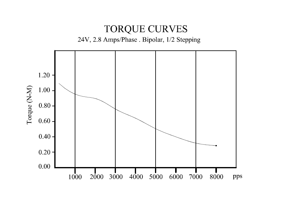 К примеру вот диаграмма зависимости момента на валу и импульсов в секунду на ШД. Чем больше импульсов, тем меньше будет момент при тех же оборотах.sivolap36 писал(а):А почему ты связываешь дробление шага и скорость?