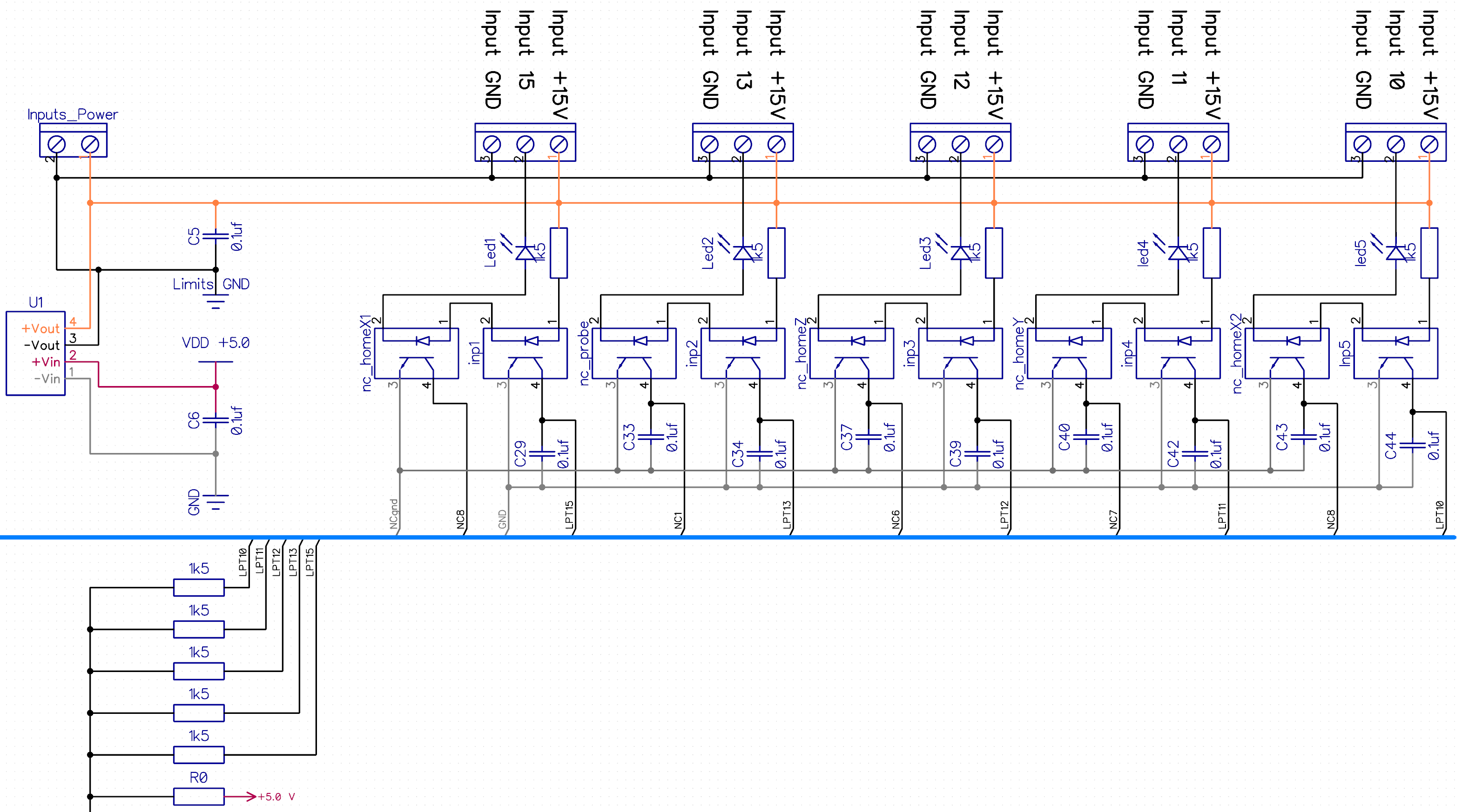 И, обычно, станкостроители заземляют все, кроме компьютера, и получается, что между системником и станком 110 В. Это приводит к протеканию паразитных токов через LPT кабель. А т.к. ко входам на плате подключается корпус шпинделя для датчика длины инструмента, что-то происходит не так, и появляются ложные срабатывания. При чем, что странно, появляются они при замкнутом входе!