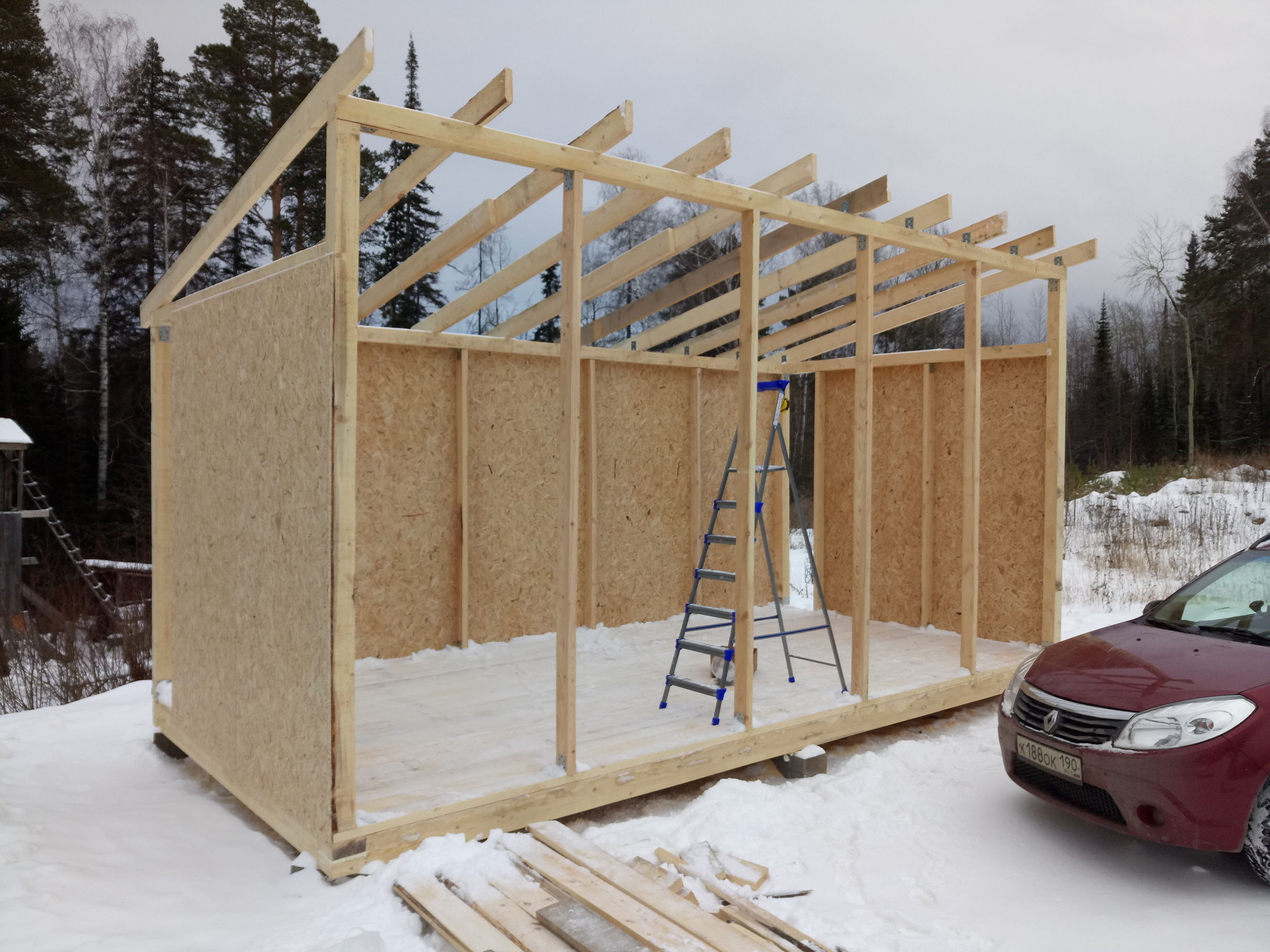 Первым делом нужно было построить сарайку, чтобы было где хранить инструменты.
