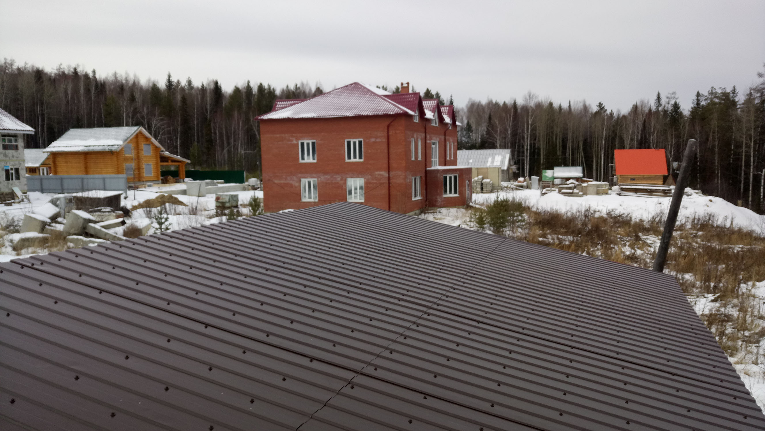с полноценными двумя этажами и чердаком, но без подвала и без погреба. Крыша двускатная.