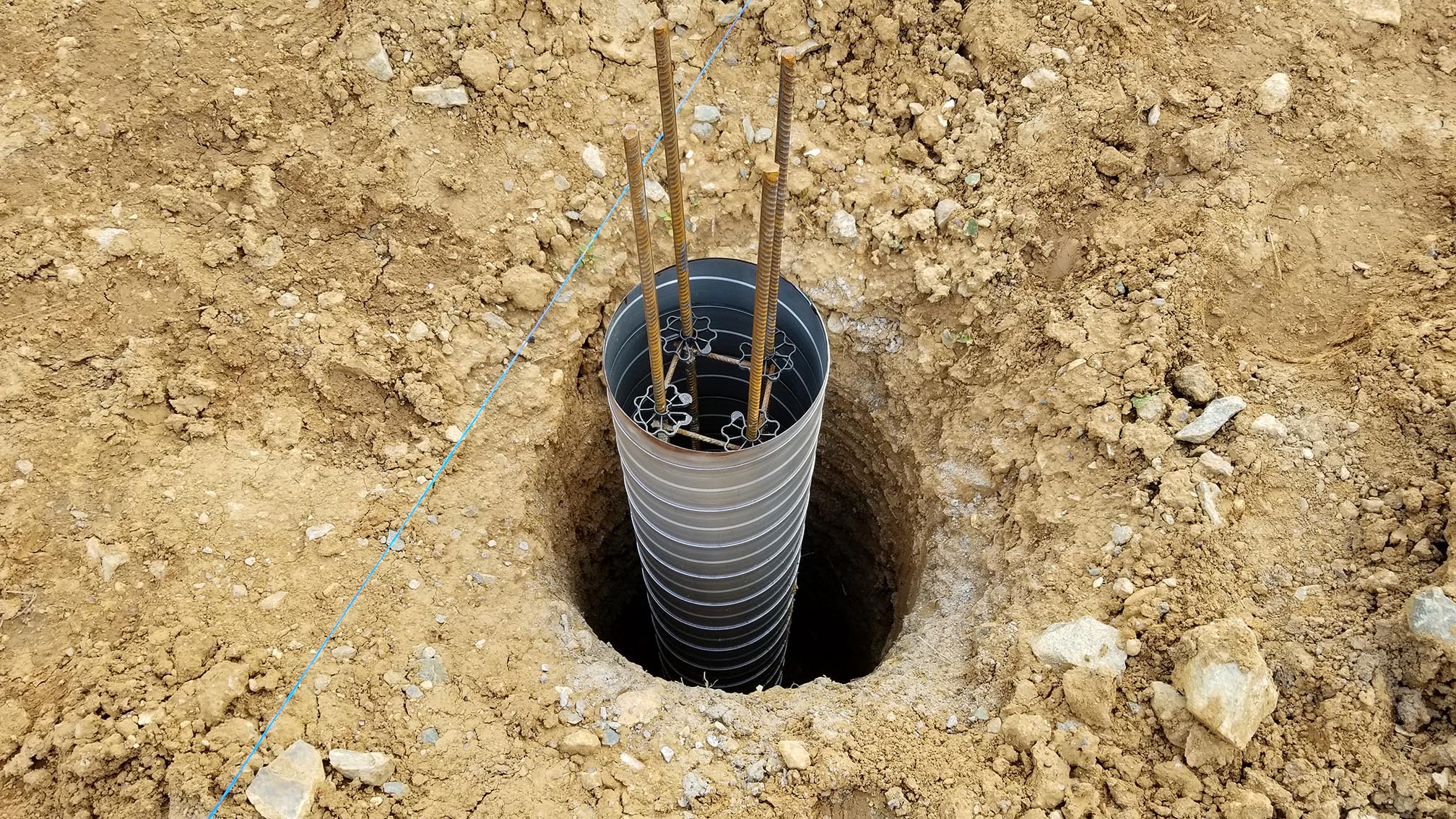 Купил жестяные трубы для несъемной опалубки колонн. В Екатеринбурге изготовили мне армокаркасы для колонн (это оказалось дешевле, чем покупать арматуру в Новоуральске). Приобрел маленькую бетономешалку в ОБИ за 6000 руб, привез песок, щебень, разметил участок и начал бурить.