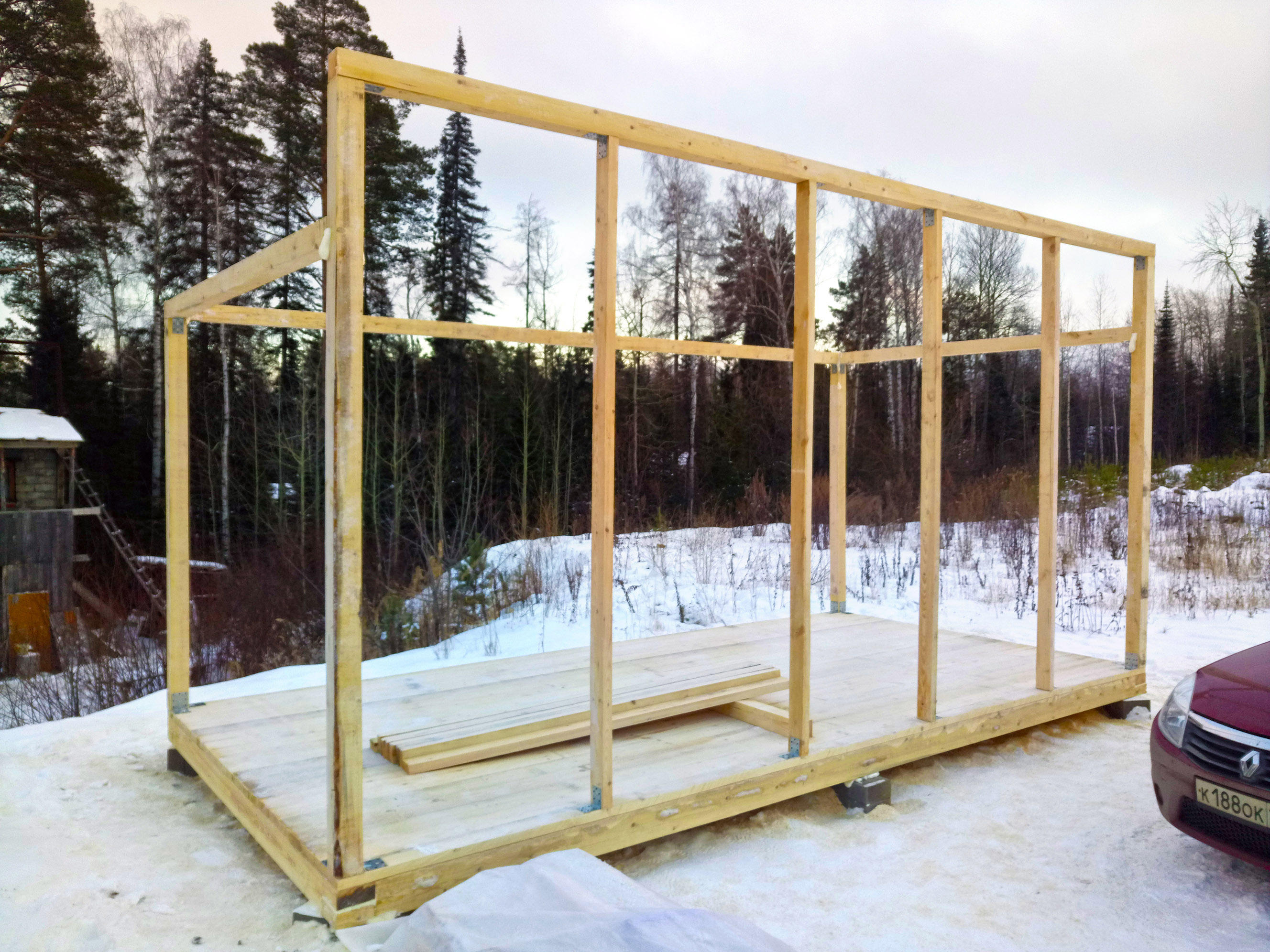 Первым делом нужно было построить сарайку, чтобы было где хранить инструменты.
