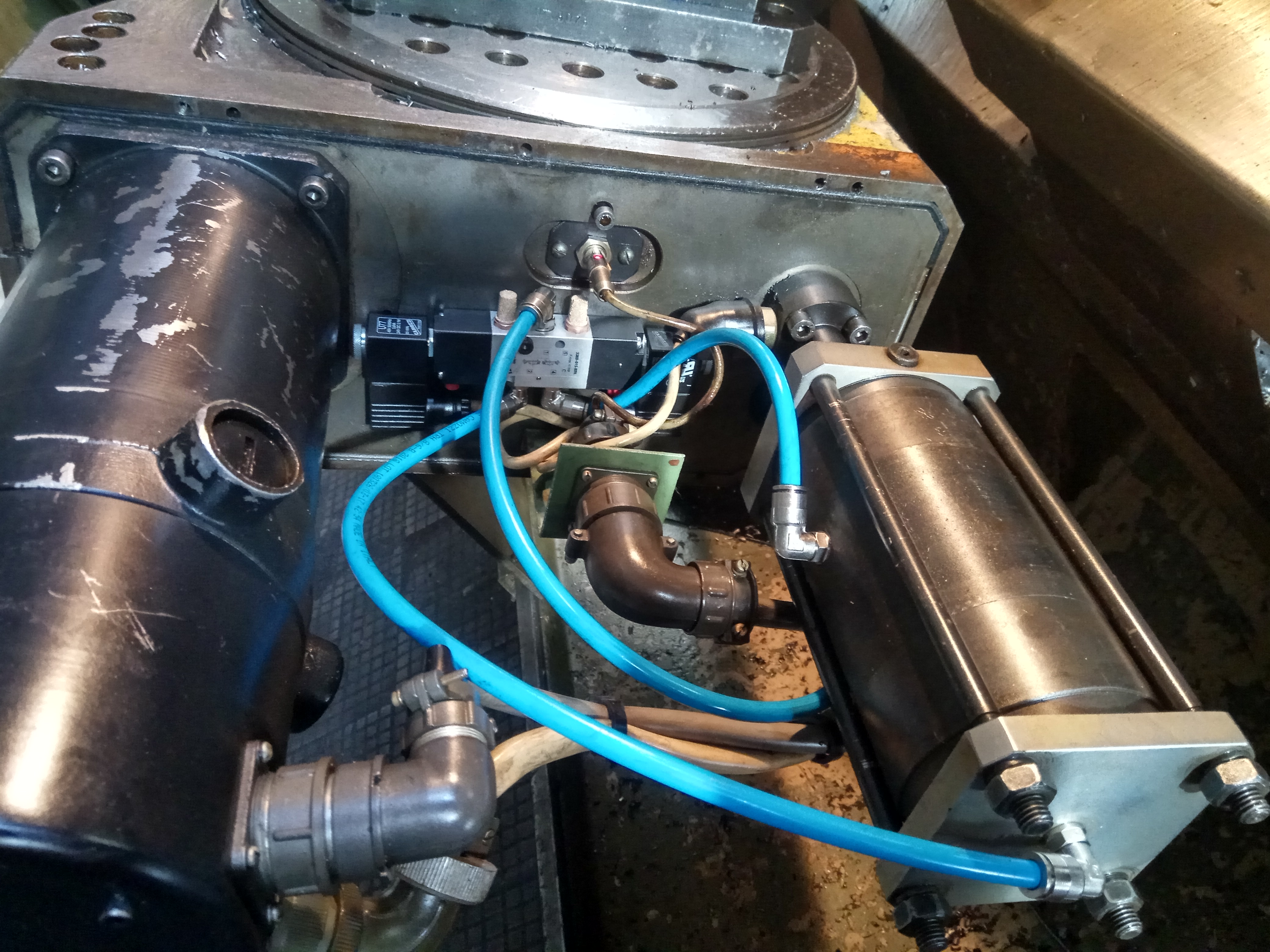 С пневматикой станка закончил, теперь работает переключение скоростей, позиционирование шпинделя (при М19), зажим-разжим 4 и 5 координаты.