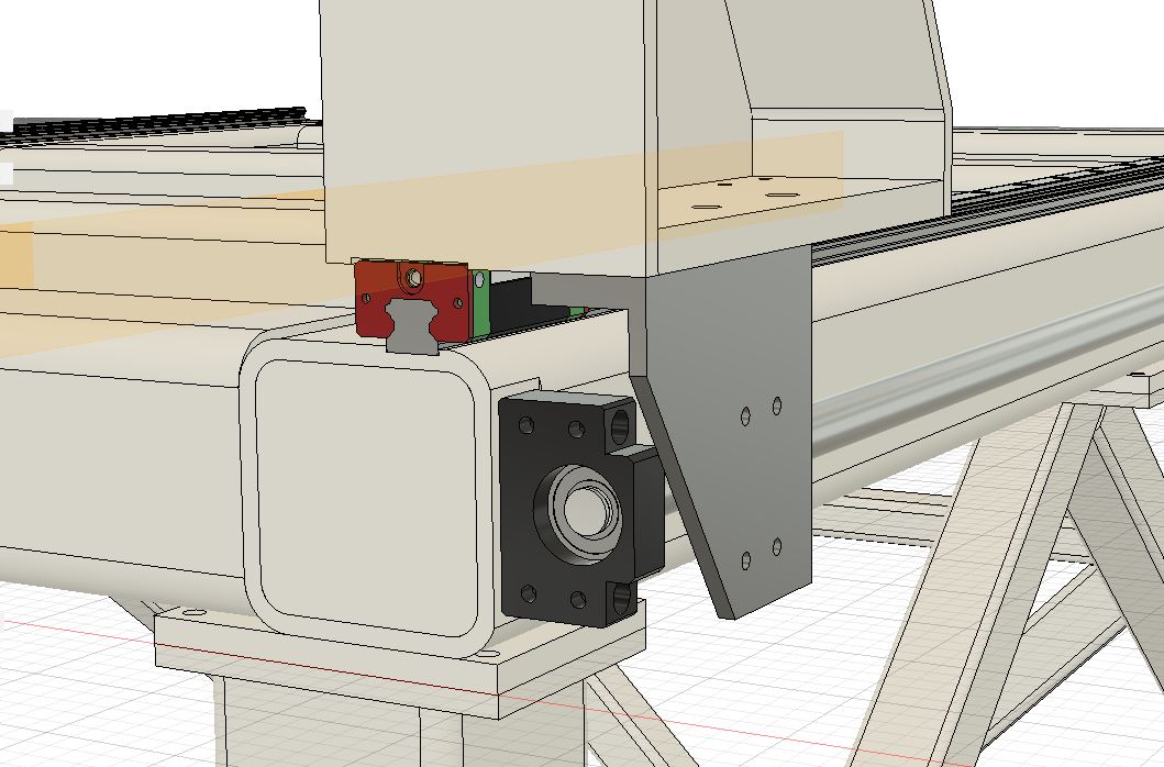 Далеко от осевой линии рельса ШВП размещать, думаю будет не правильно. Как бы перекосов не возникало. Все от конструктива конечно будет зависеть.