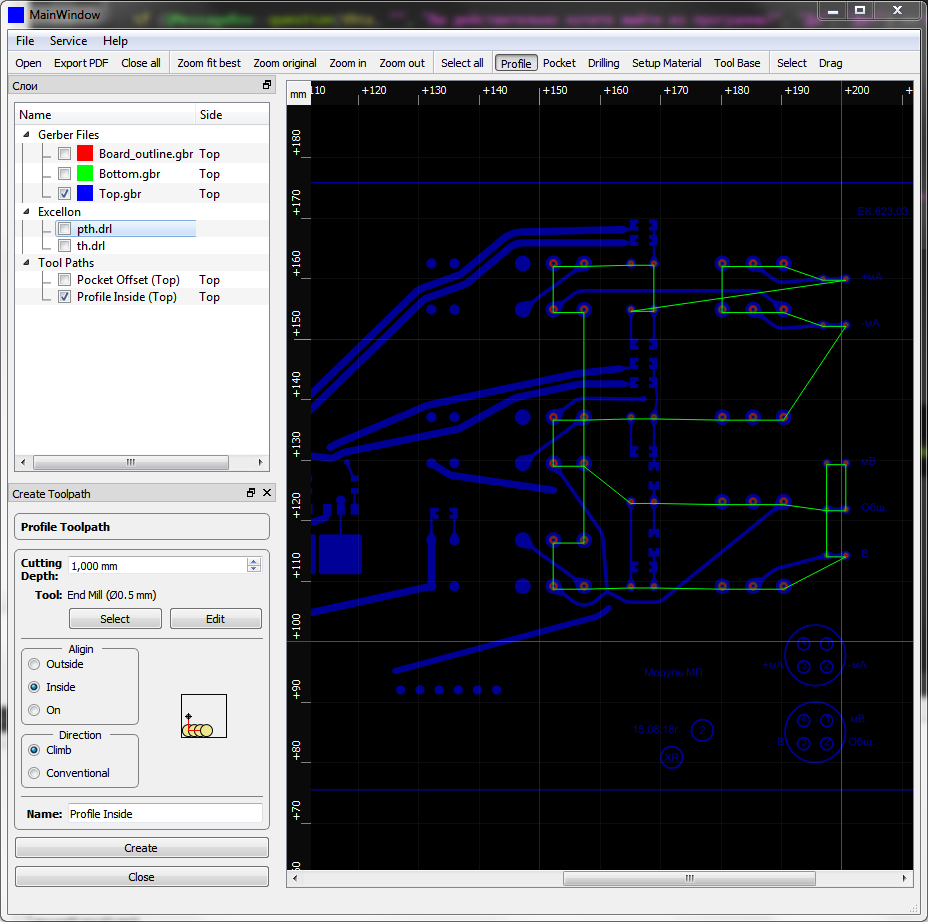 Это разные классы по хранению данных и типу обработки в программе. Не всегда в апертурах содержится информация о диаметре отверстия. Если загрузить файл сверловки то его можно пересохранить как программу сверления или создать фрезеровки через профиль.maxx2000orel писал(а):3. Почему бы фрезу не выбрать как сверло? Траектории группируются один хрен по инструменту, так пусть фрезеровка и сверление будет в одном файле если инструмент одинаковый.
