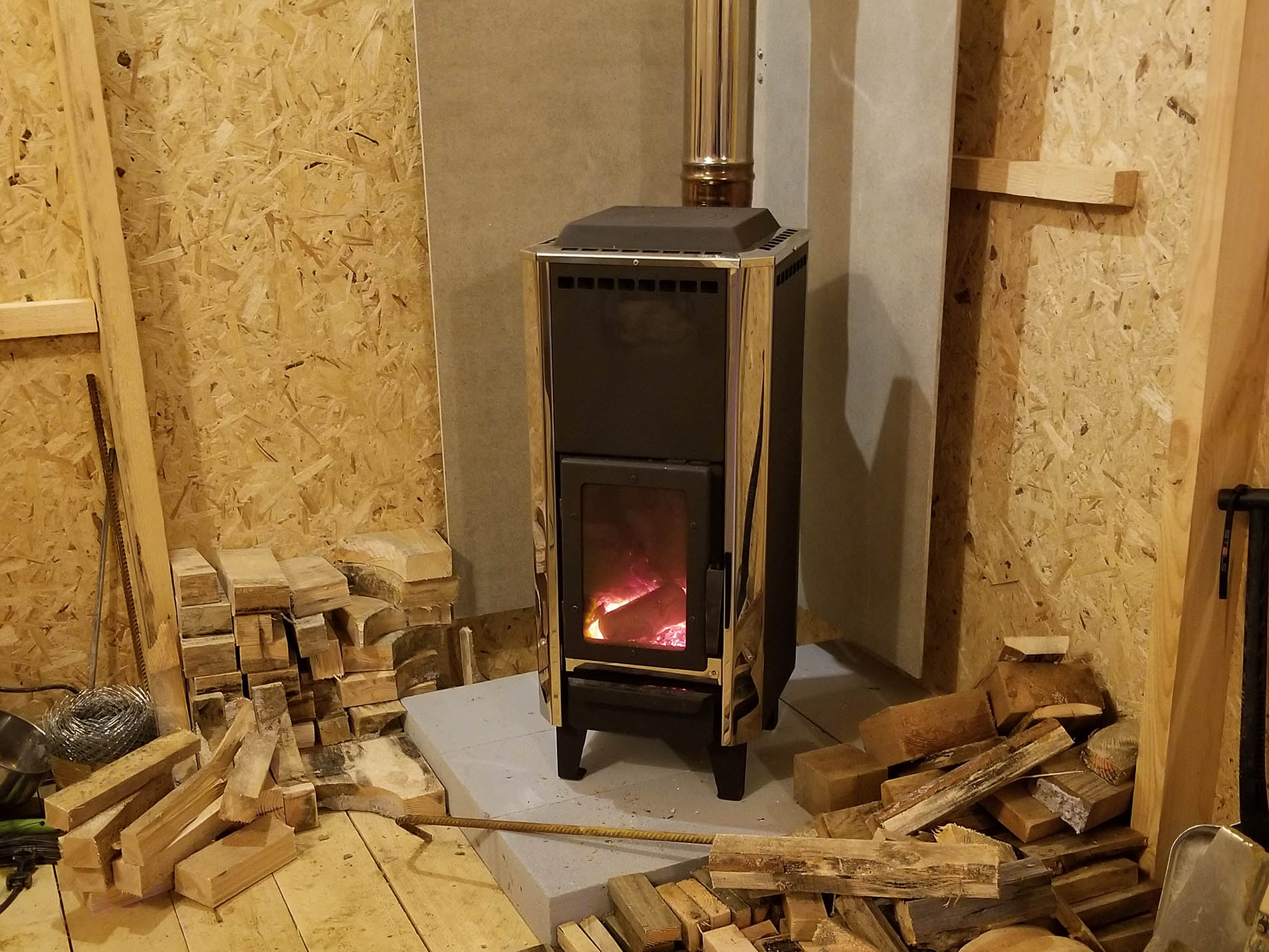 Выбирал довольно долго. Довольно удачный вариант приобрел. Места много не занимает. Конвекция отличная. Корпус не очень горячий. Стекло — большой плюс. Топка из толстой нержавейки. Чугунная плита сверху. Готовить действительно можно. Масло на сковородке начинает шкворчать примерно через минуту.