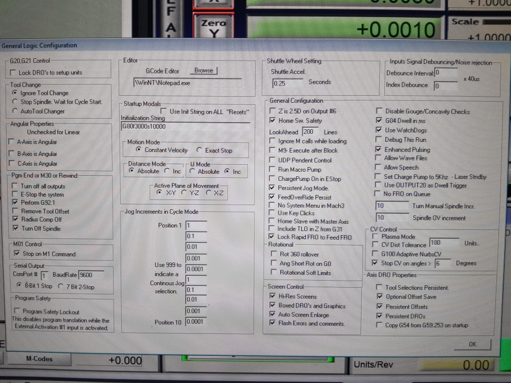 Да еще бывает, что ось Z не реагирует на ручное перемещение, как бы с задержкой, те нажал pg up или pg down, а шпиндель начинает ехать задержкой.
