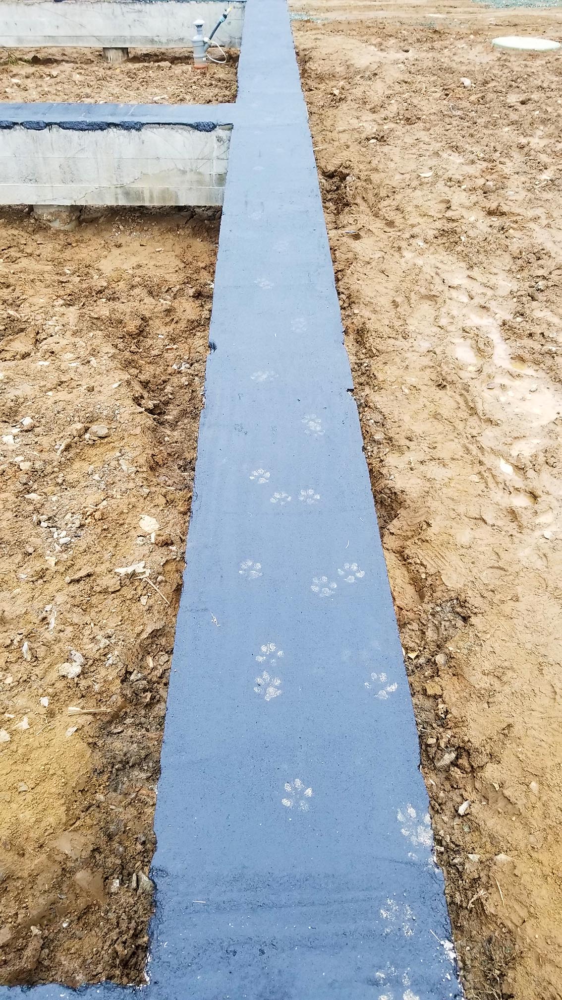 А, ну и канализация — прокопал. Уклон сделал по нивелиру. Отсыпал песочком. Приклеил к трубе греющий кабель и надел теплоизоляцию. Проверил, вылив стакан воды. Засыпал песочком. Потом грунтом.
