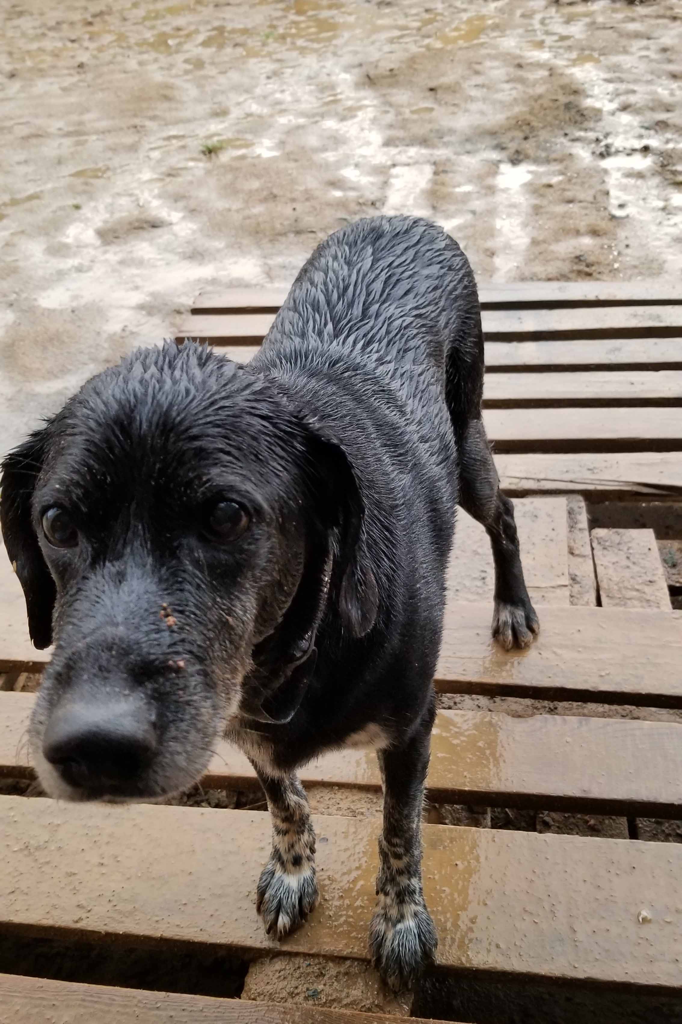Выровнял бетоном плоскости под стены. На улице все еще мокро и грязно. Грузовику с блоками не проехать... Раз уж подсыхало долго — отсыпал въезд крупным щебнем, а сам участок — тонким слоем песка, чтобы глина к ногам не прилипала.