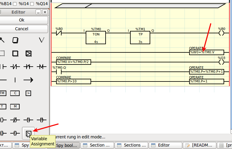 Каждая линия должна заканчиваться либо катушкой (любой ее разновидностью) , либо элементом присваивания (ASSIGNMENT): Если мы попытаемся поместить