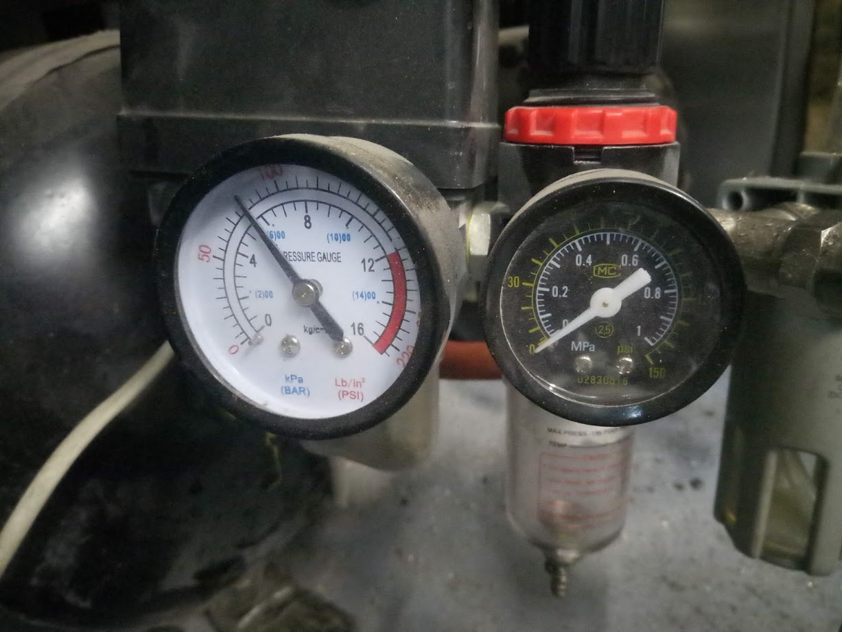 В мастерской стоит самодельный компрессор из компрессора от холодильника и ресивера для тормозной системы Камаза (описание отдельно напишу если кто попросит)