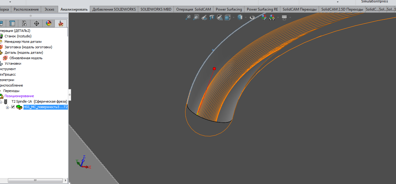 Вот что у меня получилось сделать стратегией HSS Между двух кромок, большую канавку фрезой сферой D6 а меленькую фрезой сферой D2 ! Настраеваем одну траекторию после чего делаем ее копию и переопределяем только геометрию и инструмент!