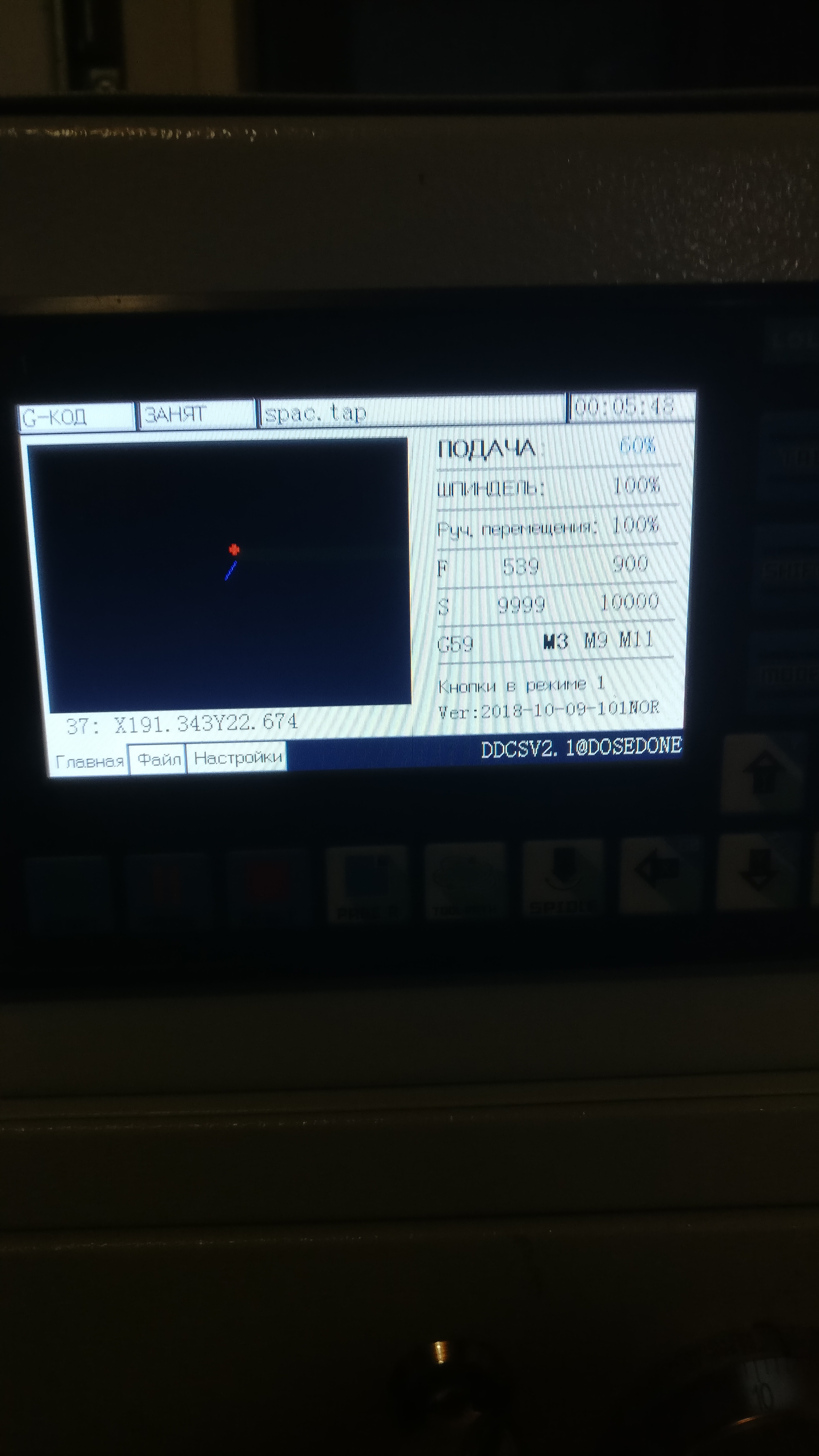 Если нет - значит вы можете разместить камеру так, чтобы дисплей контроллера был достаточно крупным на изображении. И там точно так же видно - координаты стоят, READY статус, возможно M30 или что-ндь подобное в поле последней команды (не помню, отображает или нет, вроде отображал).