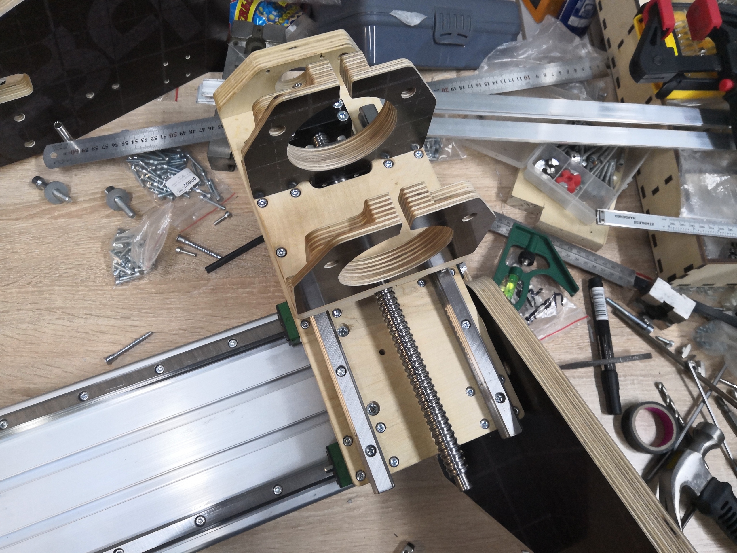 Ещё попутно собираю станочек для раскроя листового материала и 3д фрезеровки пенопласта, рабочее поле 570х800 мм.