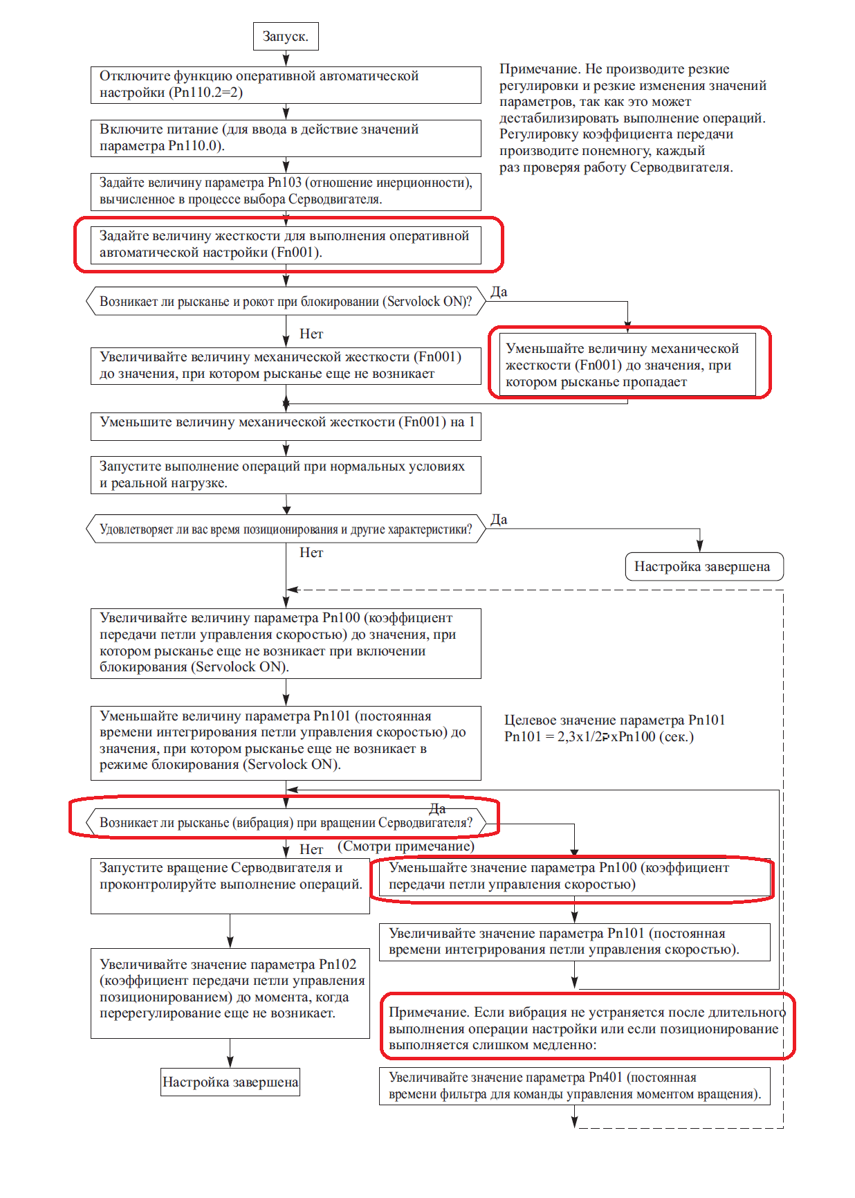 эээээ.... мда... Саня - хочешь я тебе открою страшную тайну ??? параметр Fn001 - обзывается "Rigidity setting during normal autotuning" - настройка жесткости для нормального автотюнинга.... То есть - это предварительная установка параметра "Р" для PID регулятора.... Который параметр отвечает за скорость (жесткость) реакции привода. Ибо это Р - пропорциональный регулятор....