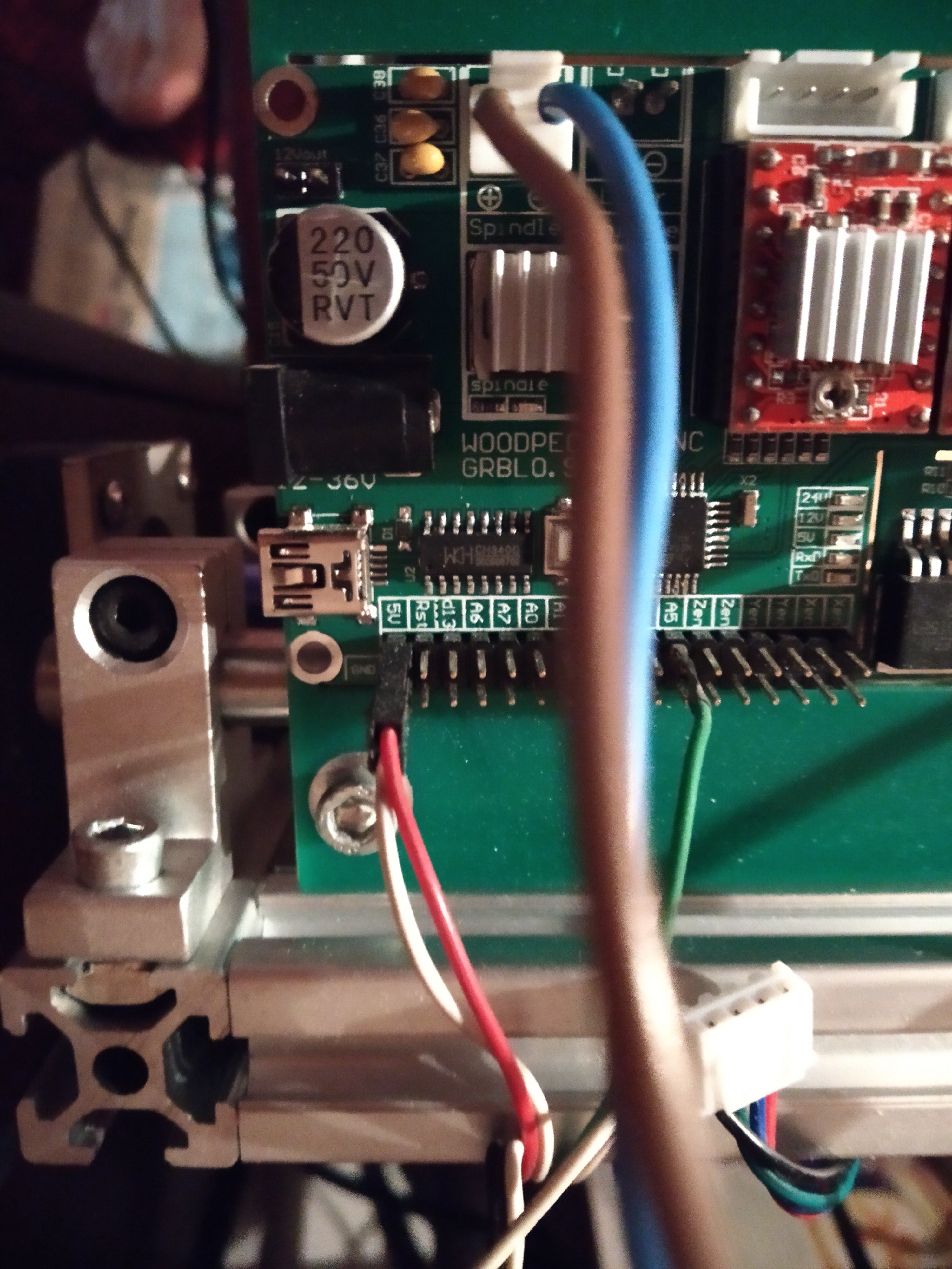 мотор китайский 300Вт, напрямую подключен к контактам платы; БП 24В 5,62АEvg69 писал(а):не тянет источник питания или помехи от двигателя шпинделя. Какой двигатель шпинделя?