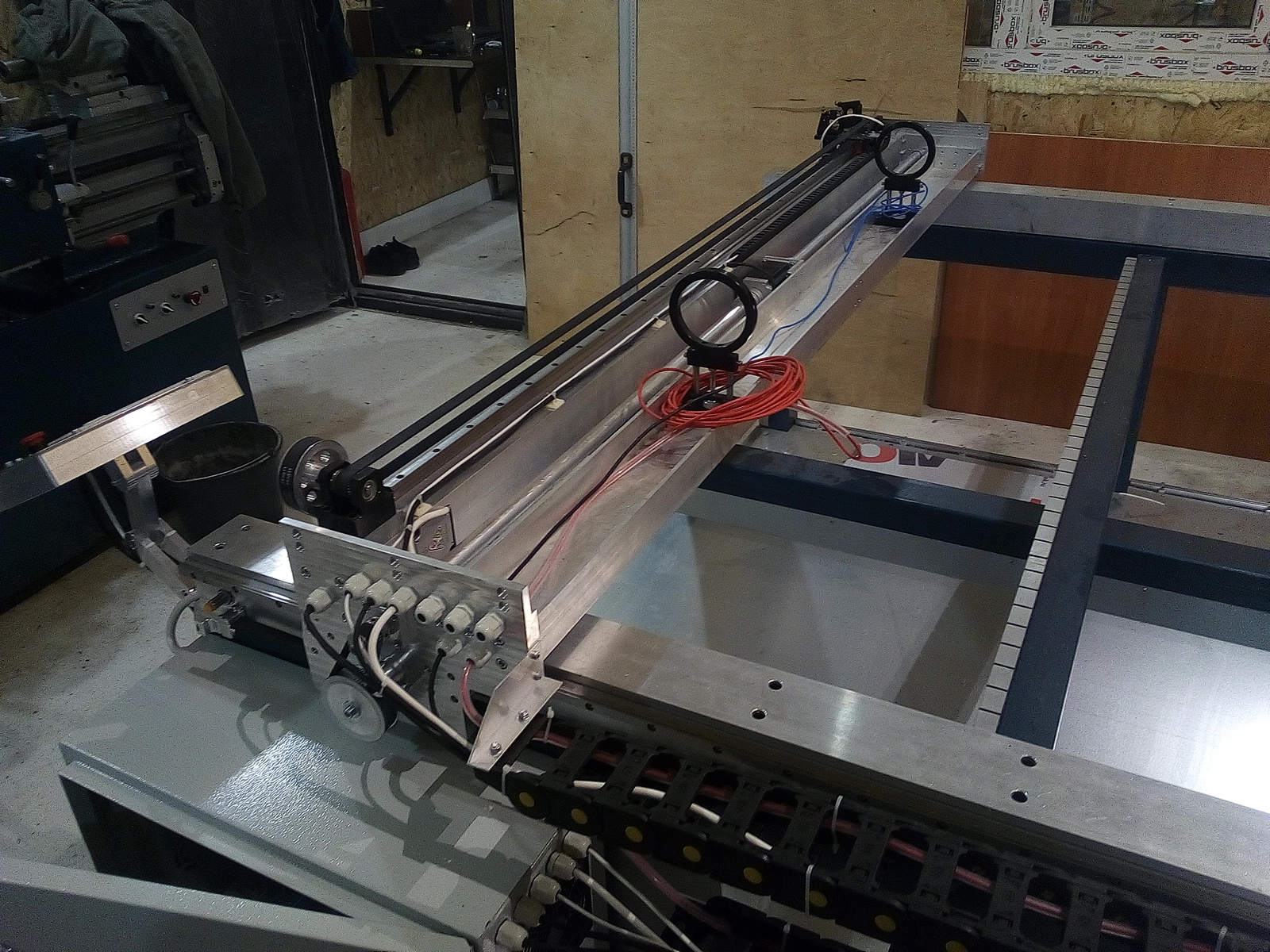 Вроде мелочи, а времени отнимают прилично... Кроме того, установил наконец станок на его постоянное место жительства, провел к нему питающий кабель и подключил. Поковырялся слегка в настройках, после чего смог пошевелить осями. 500 мм/с бегает, можно и быстрее, но начинают вибрировать трубки, передающие момент от движка на портале - они (трубки) выдавлены хреново, оси внутренней и наружней окружности не совпадают.