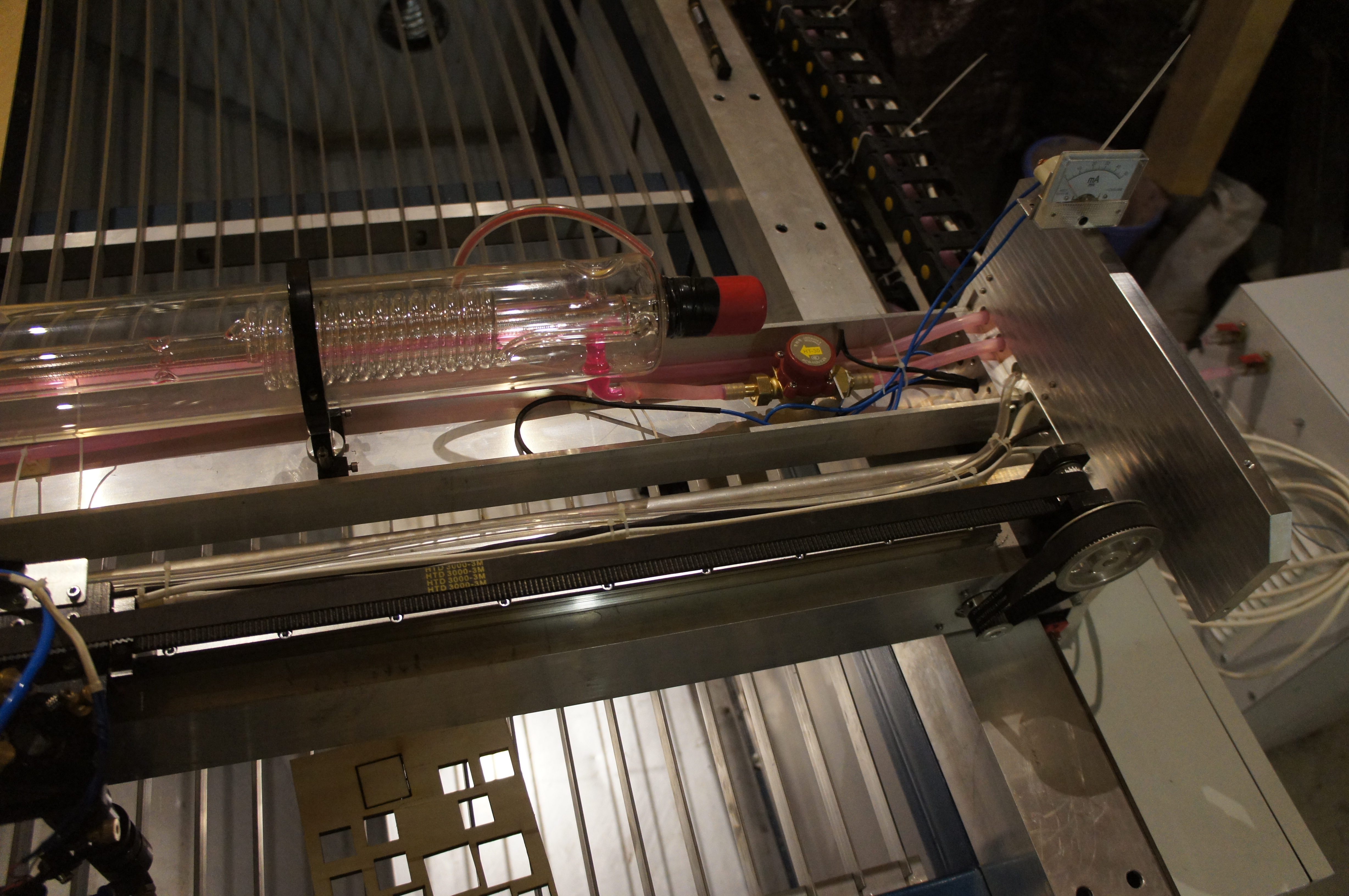 Для лазерной трубы, если она ТВОЯ, не нужно ставить большую мощность. Вообще, 80% должно быть максимумом. Если же труба и станок дядин, то можно делать все, что захочется. На трубе мощностью 90W фанера 4 мм режется примерно на 40% мощности со скоростью около 20 мм/с. Сучки, клей и прочая гадость - не в счет.