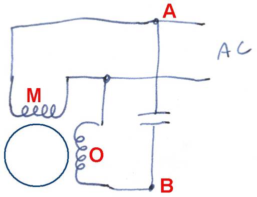 Привет. Станок работает, но появилась проблема с автосменой. Мотор на карусели стоит редукторный и на больших дистанциях перекручивает карусель, в итоге вылезает ошибка и станок может стоять, вместо того чтобы работать. Нужно сделать торможение движка. В сети нашел только про торможение 3-х фазных двигателей. У меня же моторчик как на схеме, однофазный на 200 вольт. Напруга подается на А или В и выходит на общий отвод катушек.
