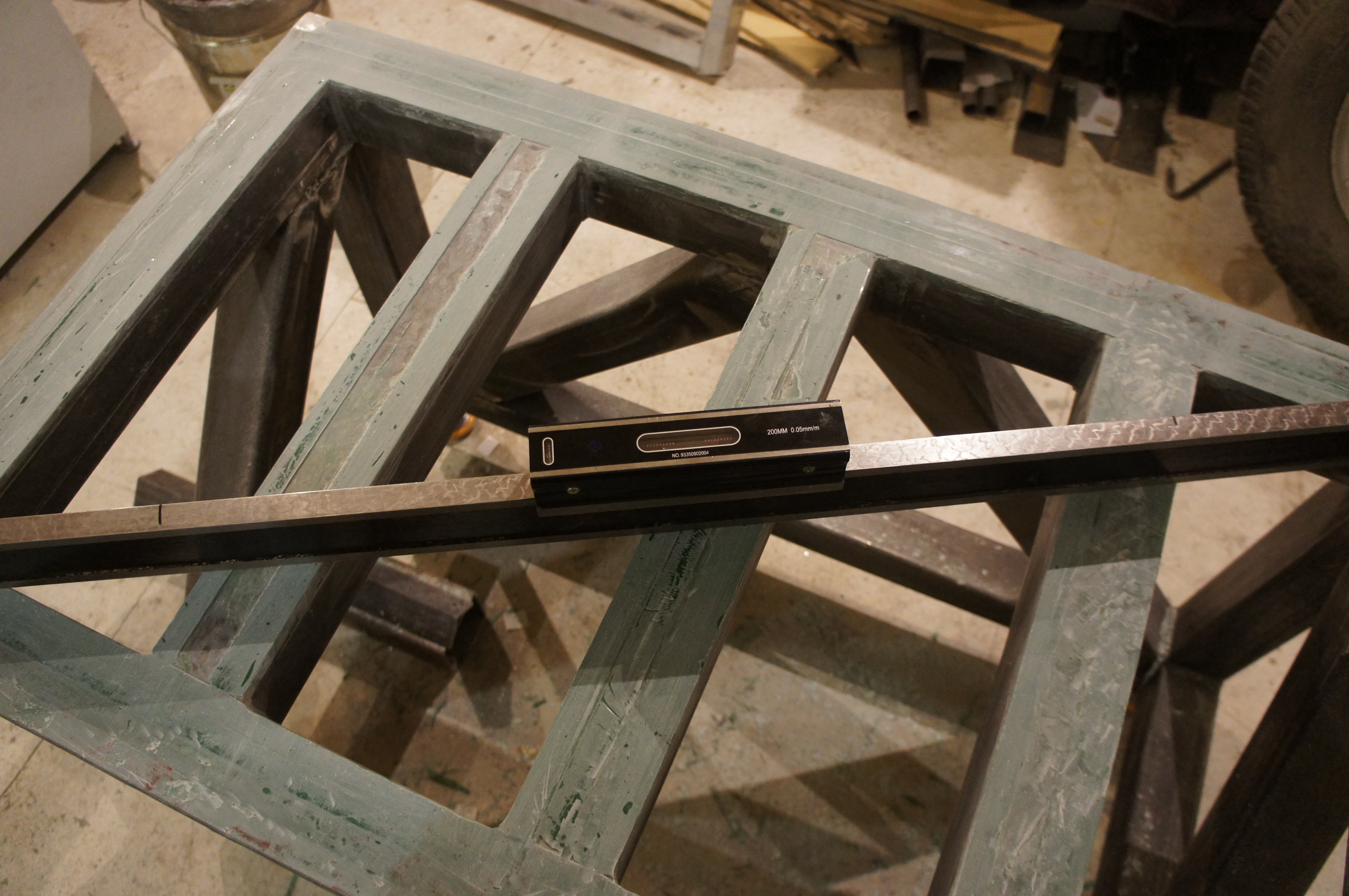 Напомню, что это не установочная поверхность под рельсы, а лишь плоскость, к которой будет крепиться решетка из скрученного профиля.