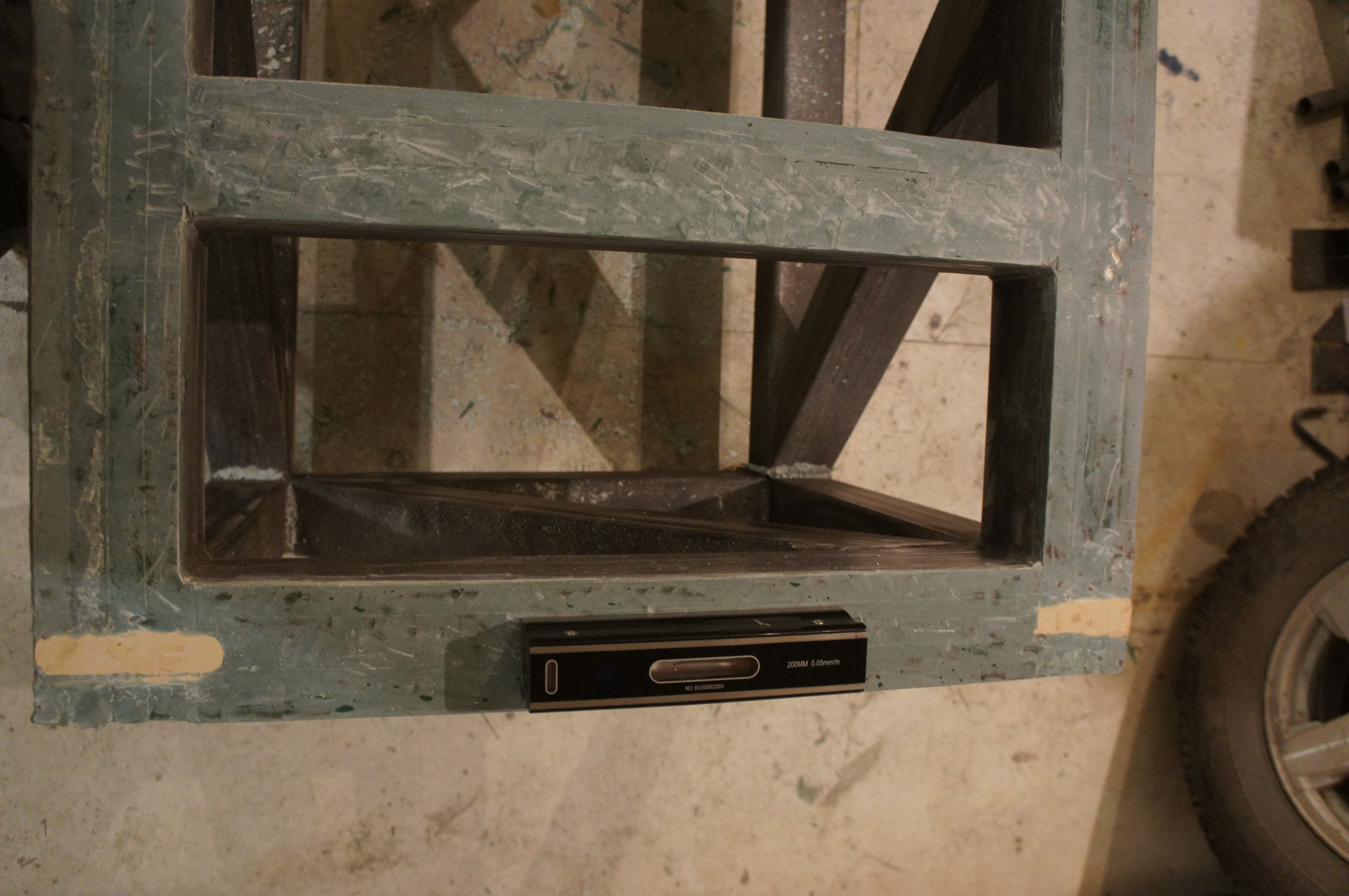 Для начала выставил раму на 3-х точках, т.к. на 4-х поймать уровень оказалось нереально....