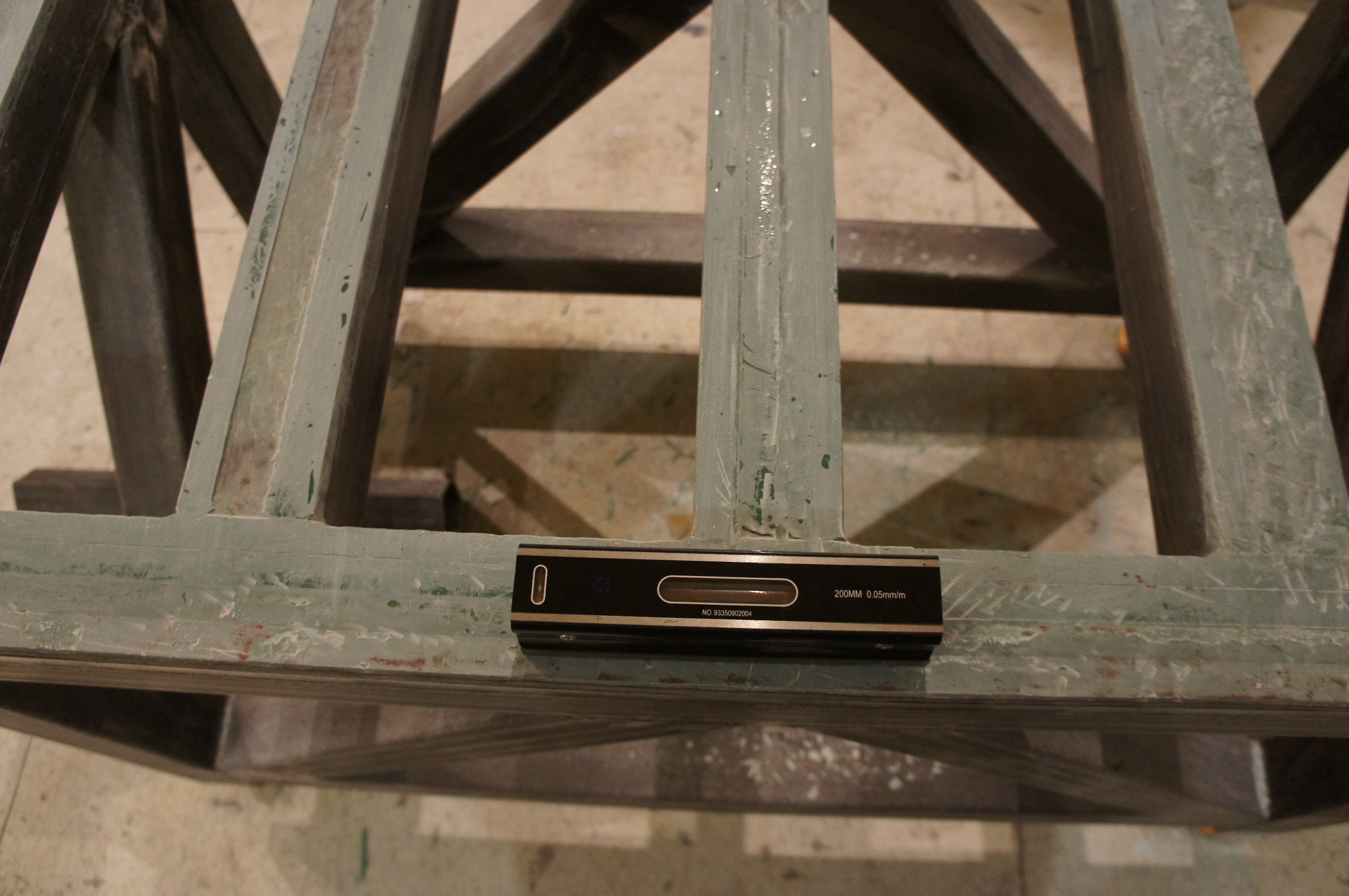 Далее, в углах рамы сделал 4 маяка, которые вышабрил в одну плоскость, используя линейку ШД-1500 и брусковый уровень 200 мм с ценой деления 0,05 мм/м.
