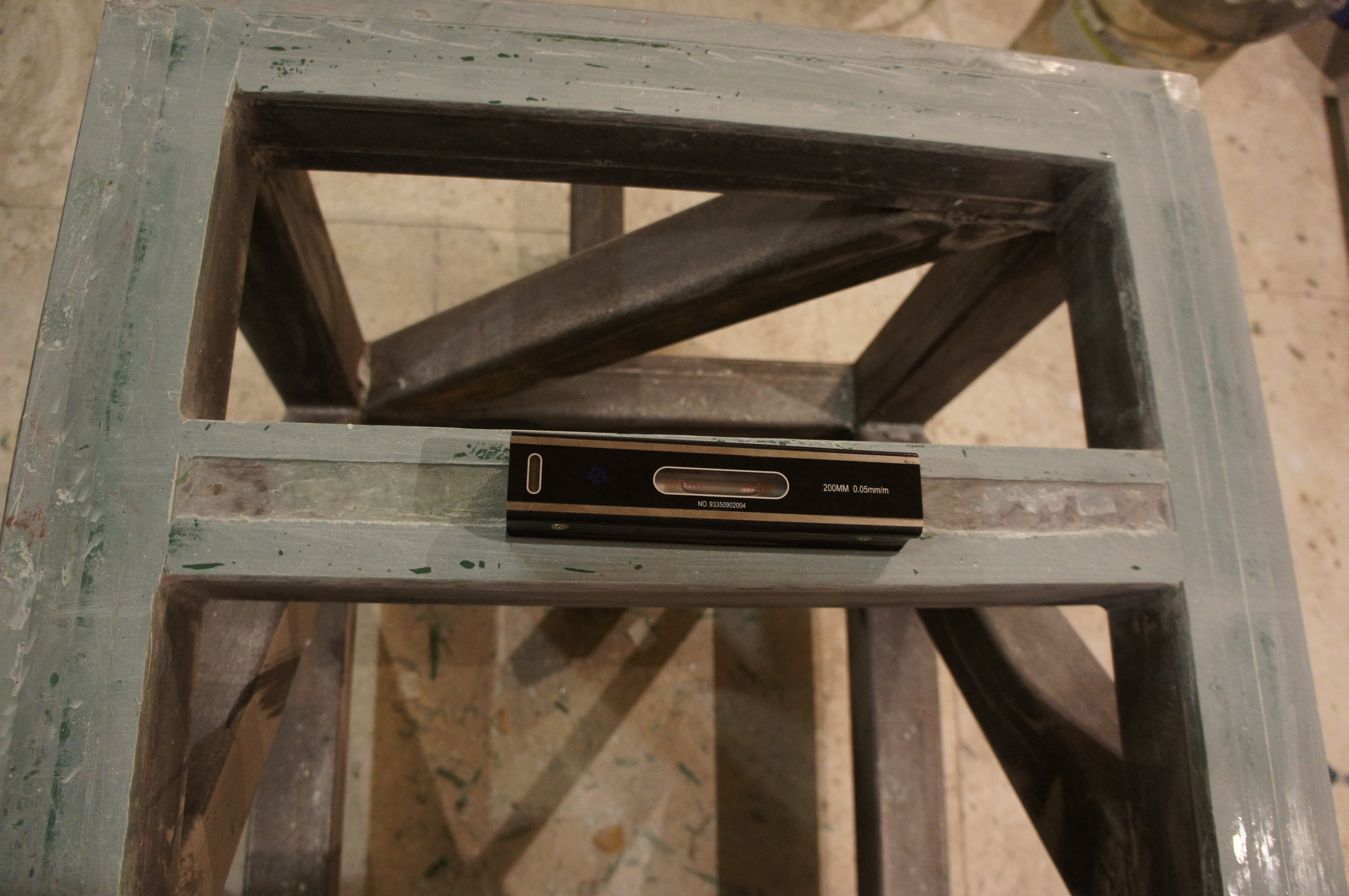 Для начала выставил раму на 3-х точках, т.к. на 4-х поймать уровень оказалось нереально....