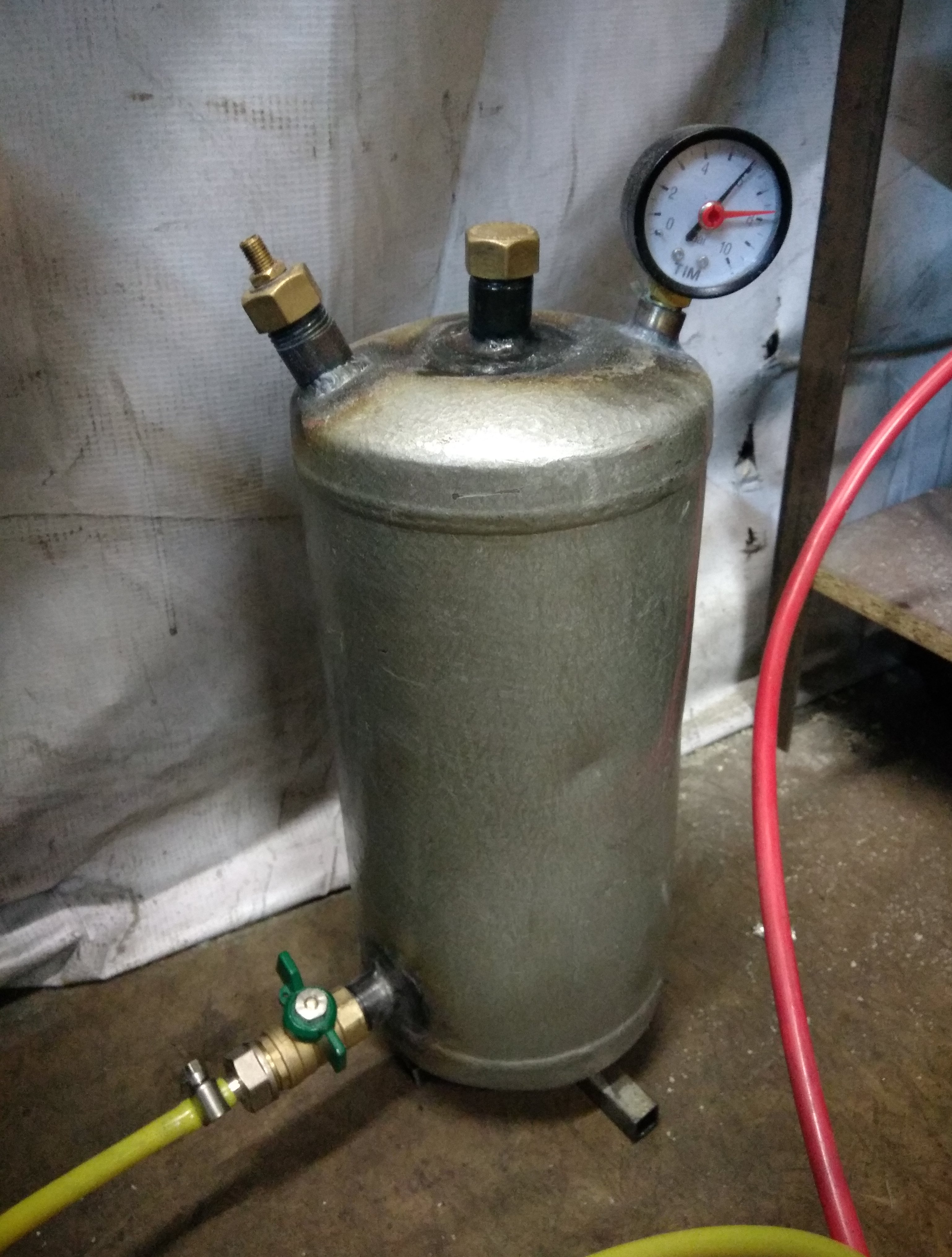 баллон из под огнетушителя, пара приварных фитингов и копеечная арматура.
