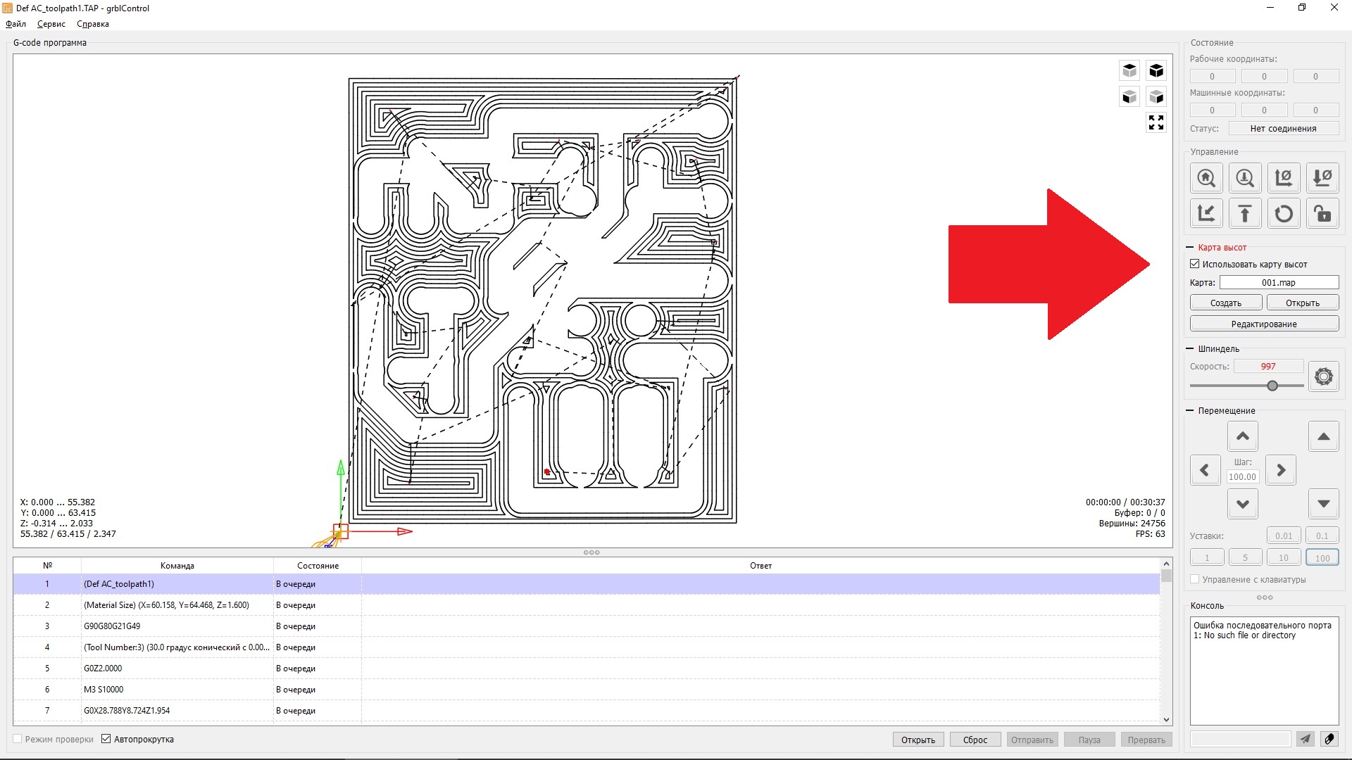 +1Sevtechlab писал(а):На китайских станках с прошивкой grbl09...открываем следующий файл с G-кодом, ставим галочку "использовать карту высот"