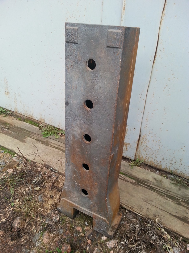 Отливка из чугуна СЧ30, габариты: высота 730 мм, ширина 175 и 220 в нижней части, глубина ~110, полая. Масса - около 45 кг. Стенка порядка 10-11 мм, под обработку сделаны припуски, утолщения под плоскость установки рельс и опор винта. Проектировалась под самодельный станок, оказалась невостребованной. Литье ЛГМ, декабрь 2016 года, хранение в неотапливаемом гараже - состарилась. Есть небольшие дефекты литья (см фото).