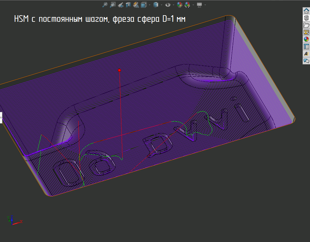 Нужна помощь. Есть вот такая форма, есть фреза конусная D6 R0.5, длина режущей 30 мм. Ни одна траектория HSM у меня не отрабатывает даже и близко. Стратегия HSM "с постоянным шагом" должна подойти хорошо, но и она не отрабатывает как надо. Однако если выбрать инструмент сферическую фрезу D1 мм, то всё красиво. Однако такой фрезы нет ни у меня, ни в продаже. Я думаю что в принципе таких тонких и одновременно длинных не существует (но сейчас не об этом)