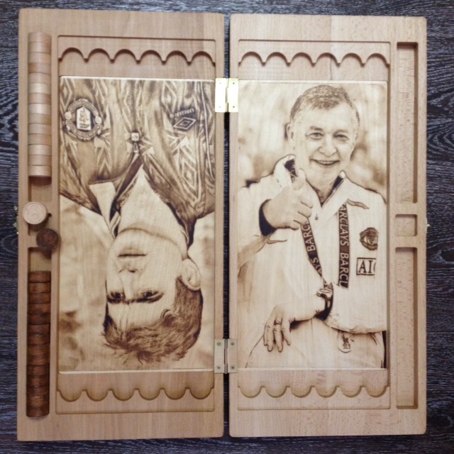 Всем привет!!! Спасибо за плюсики, приятно))) Вот ещё работа - нарды Манчестер Юнайтед. Сделаны совместно с коллегой по основной работе ( у него робот - выжигатель). На картинках Алекс Фергюсон и Эрик Кантона. Заказчик аж пищал от восхищения. К сожалению, фото не передаёт на 100% вид, но думаю достойно получилось.