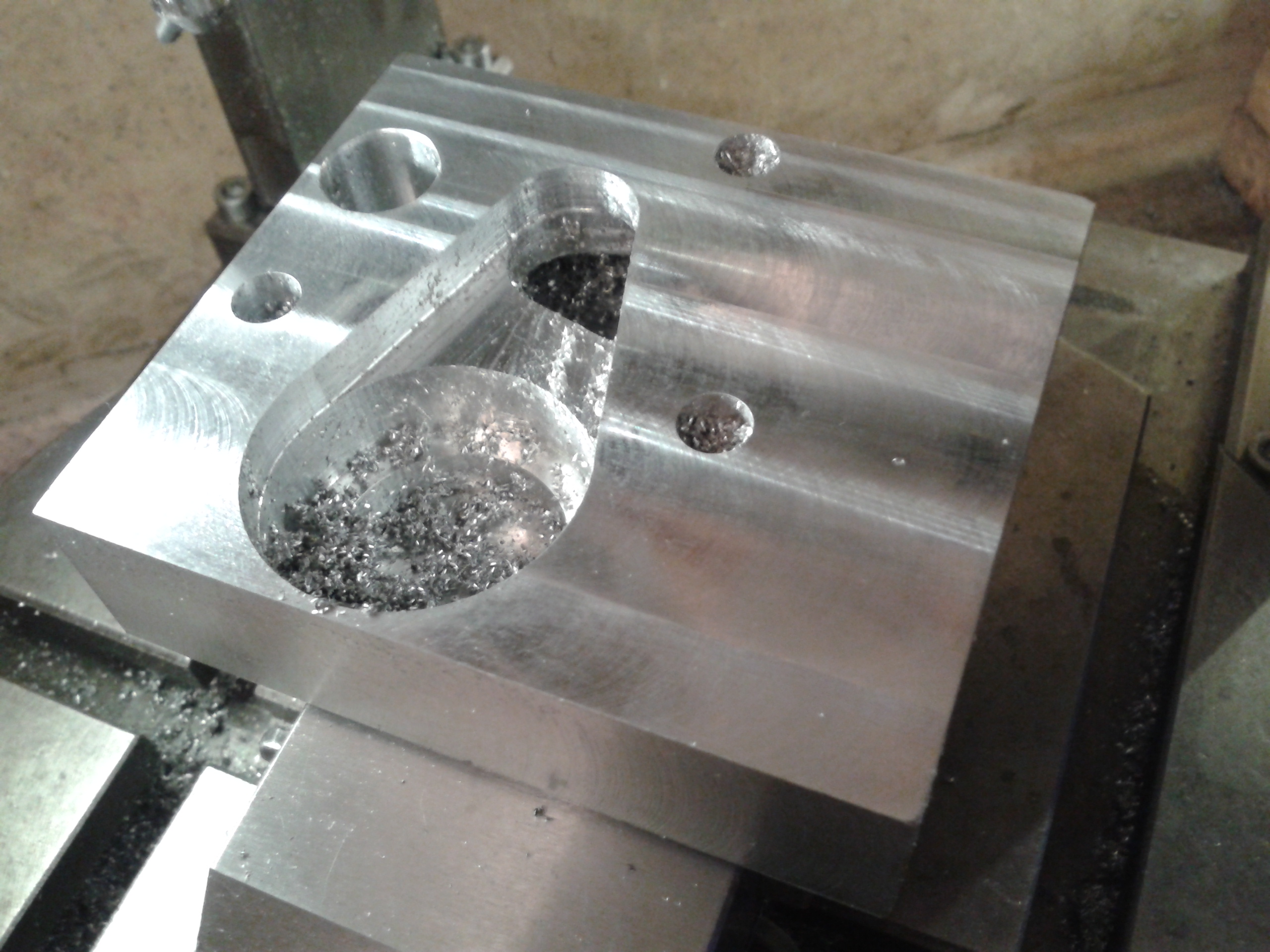 Фрезернул другу моделисту карман в модели(гоночная модель). Ай прямо без чистовой....фрезу двухзубую восьмерку дал он ,быстрорез под сферу заправленный в ручную.В общем от своего учебного пособия не жду чистоты при большом съеме. подача 120 оборот 4-4.5 тысяч. Прогу писал вручную,один кадр и размножил :hehehe: с шагом по 0.5мм.