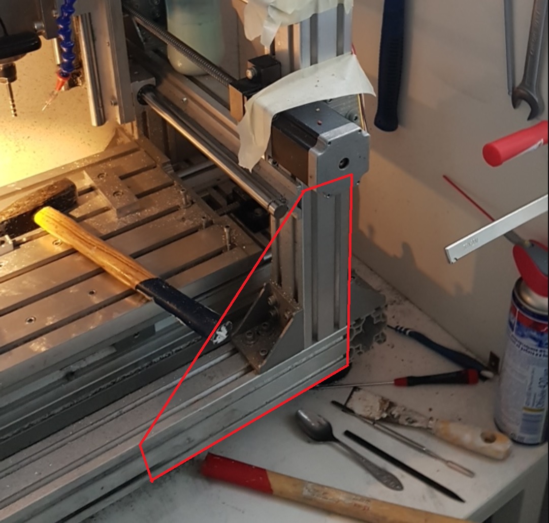 Треугольником тоже нужно будет укрепить с двух сторон. (продольные смещения снизить, когда стол с заготовкой наезжает на фрезу)