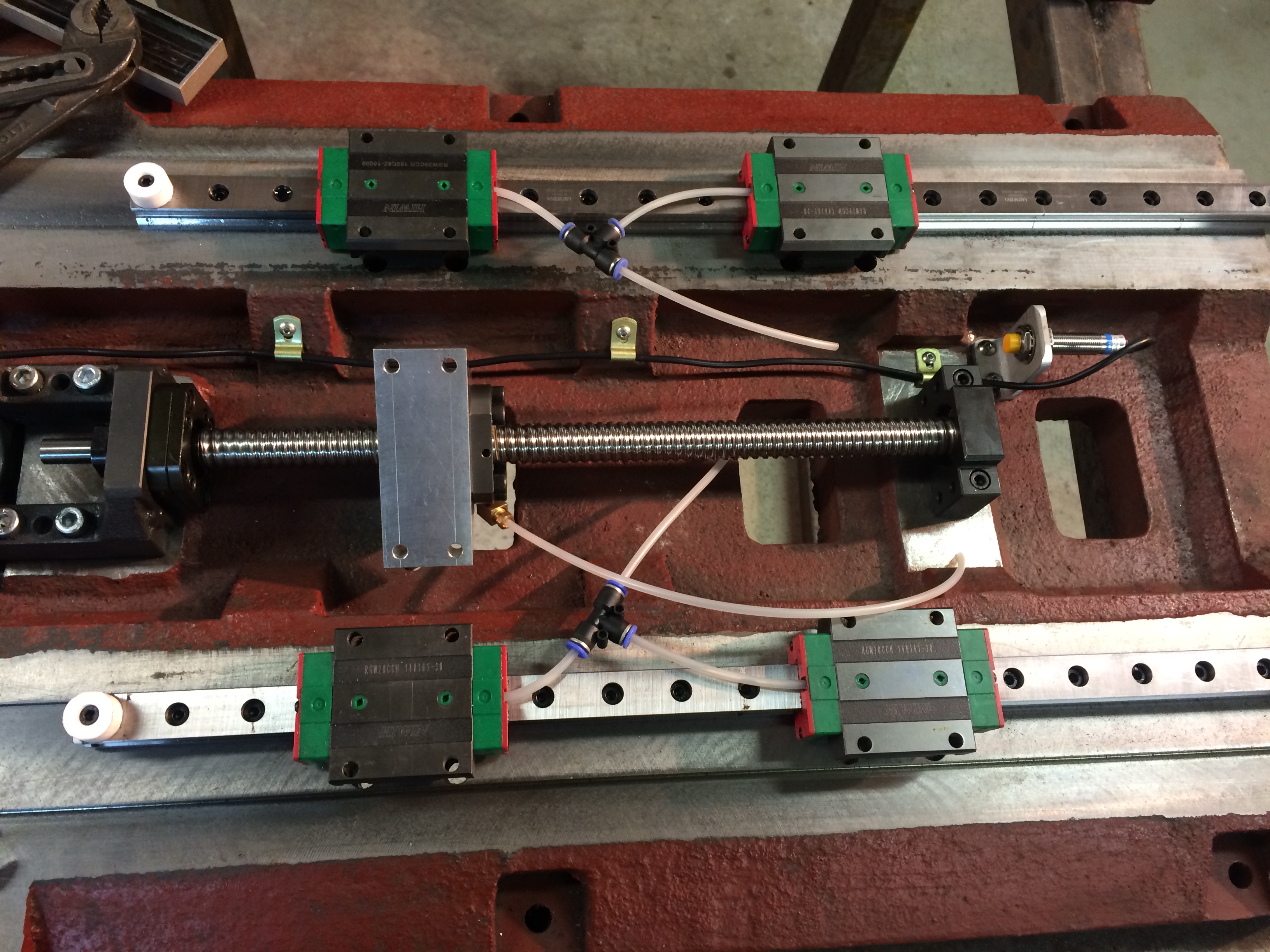 Теперь швп и каретки кушають маслице через эти две жёлтые пимпочки :D для которых пару пересекающихся каналов пришлось просверлить в переходной плите ......