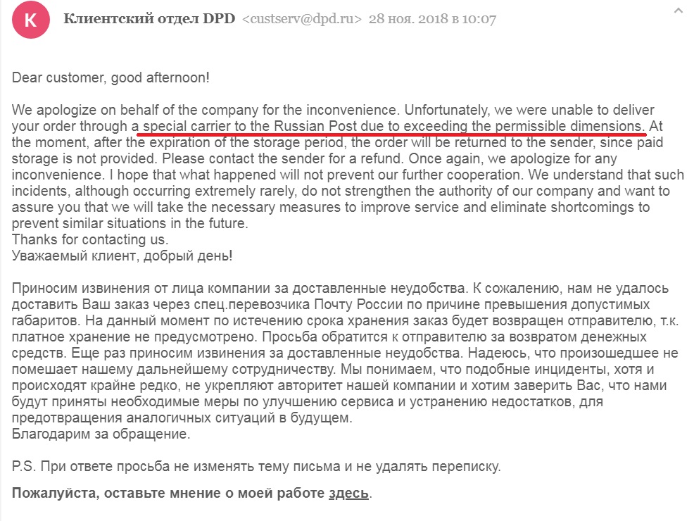 Argon-11 писал(а):В данном случае, думаю, свиньи-то DPD, а не Aliexpress.